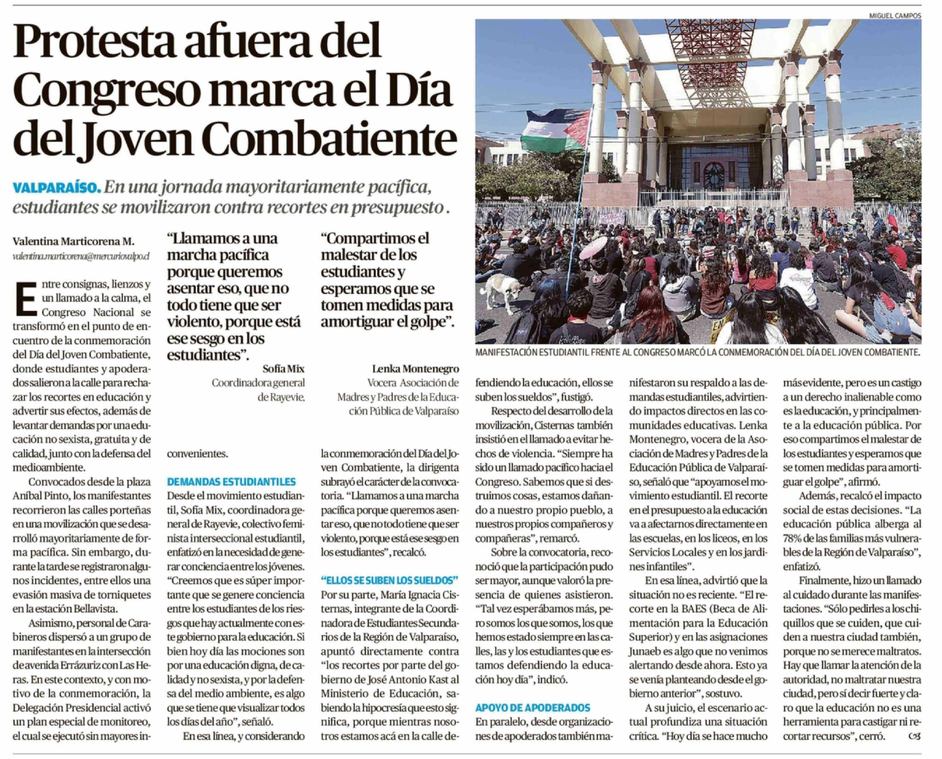 Protesta afuera del Congreso marca el Día del Joven Combatiente 30-03-2026 El Mercurio de Valparaíso |