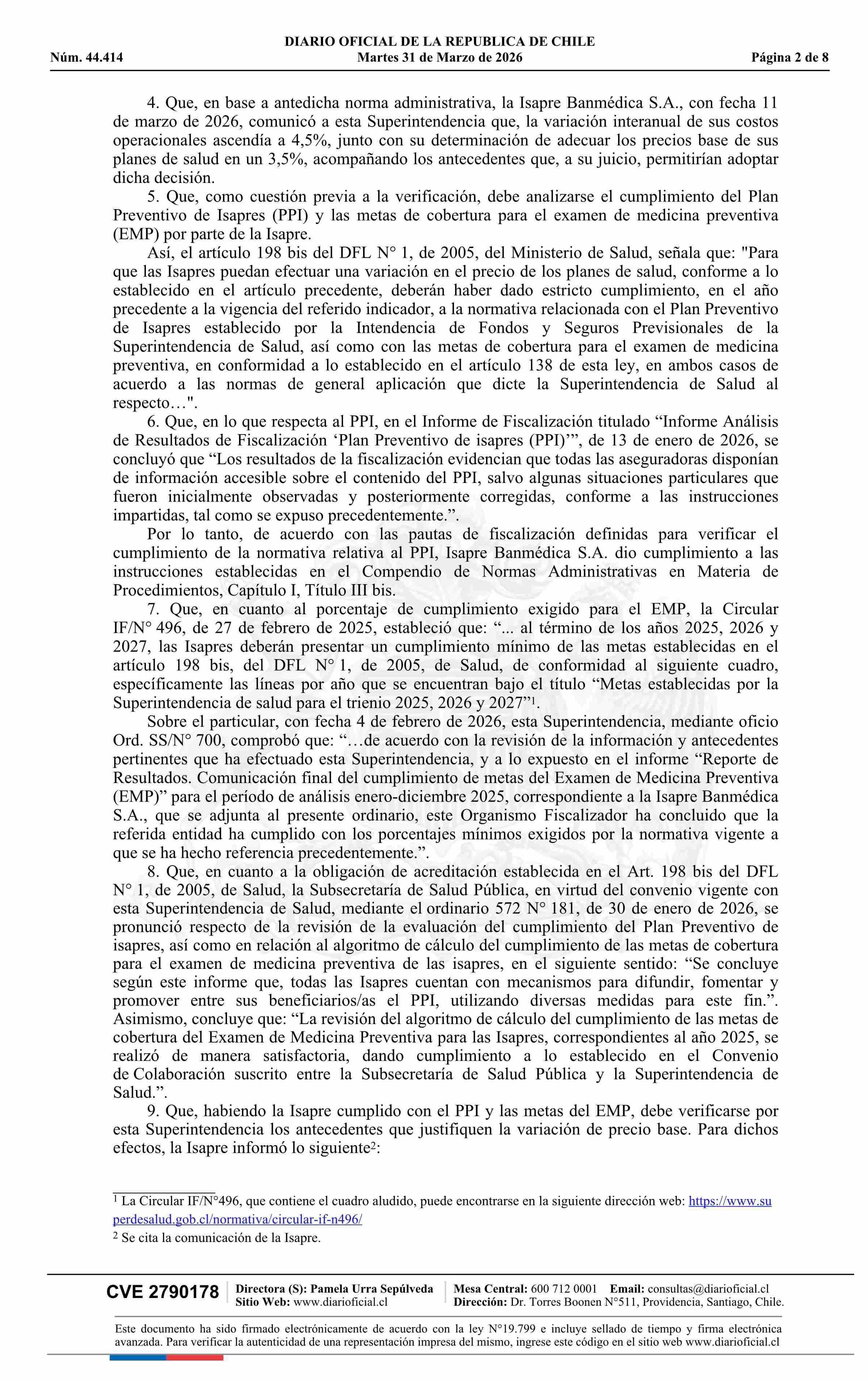 | Título: | Superintendencia de Salud / Intendencia de Fondos y Seguros Previsionales de Salud AUTORIZA EL AJUSTE DE LOS PRECIOS BASE DE LOS PLANES DE SALUD DE LA ISAPRE BANMÉDICA S.A. (Resolución) |