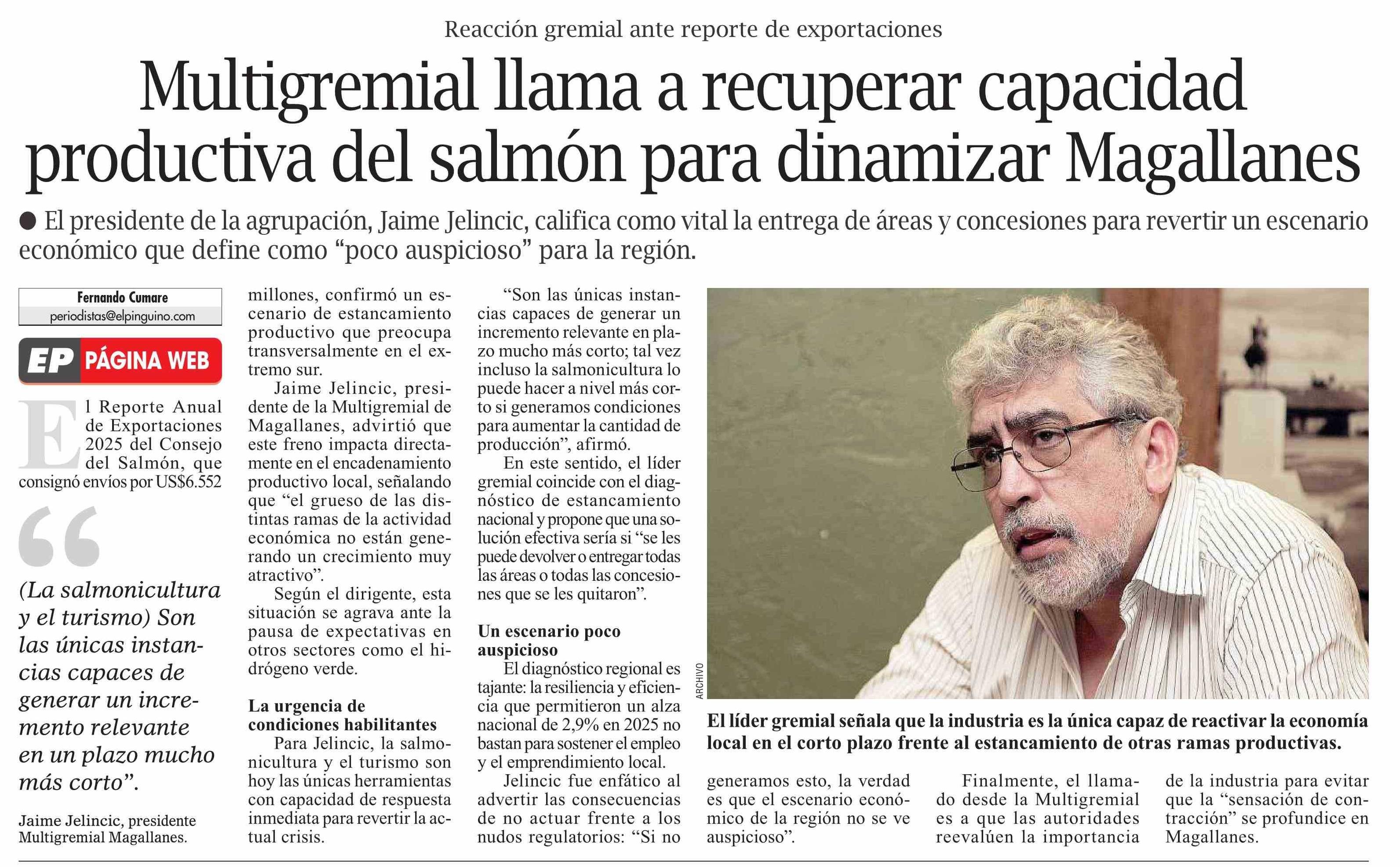 Título: Multigremial llama a recuperar capacidad productiva del salmón para dinamizar Magallanes