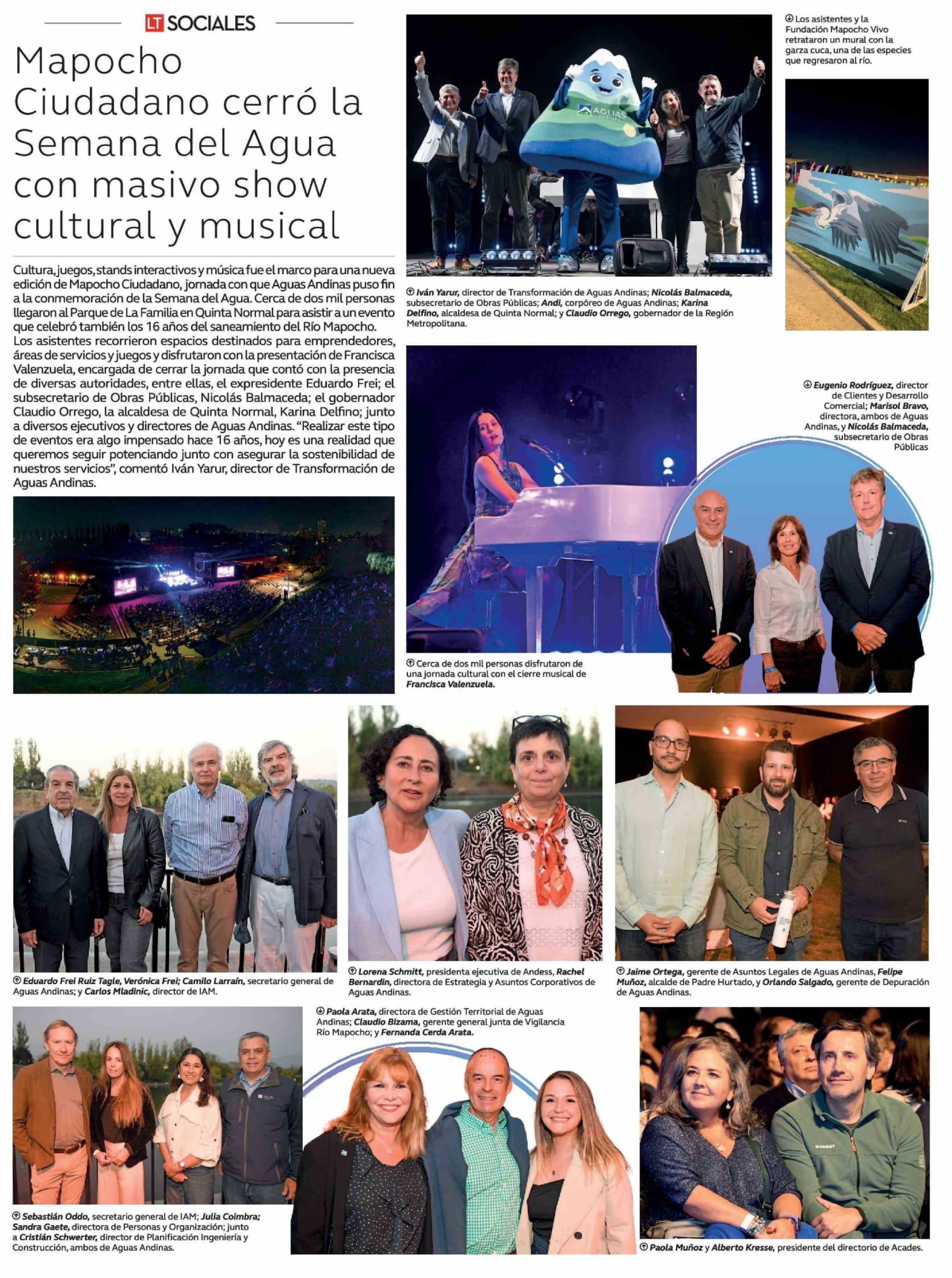 Mapocho Ciudadano cerró la Semana del Agua con masivo show cultural y musical 05-04-2026 La Tercera |