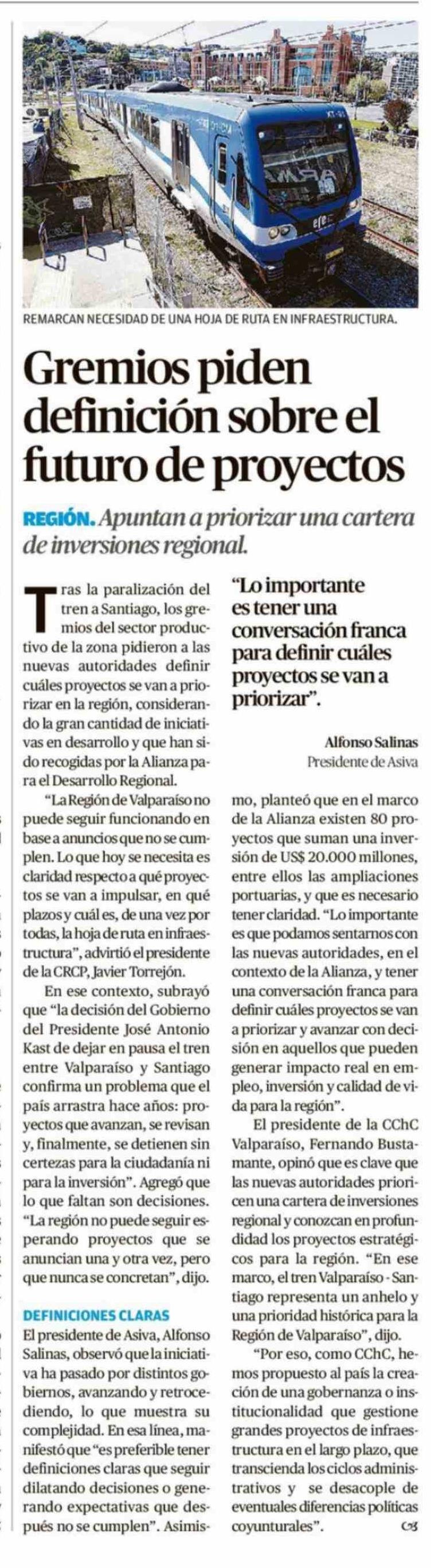 Gremios piden definición sobre el futuro de proyectos 20-03-2026 El Mercurio de Valparaíso |