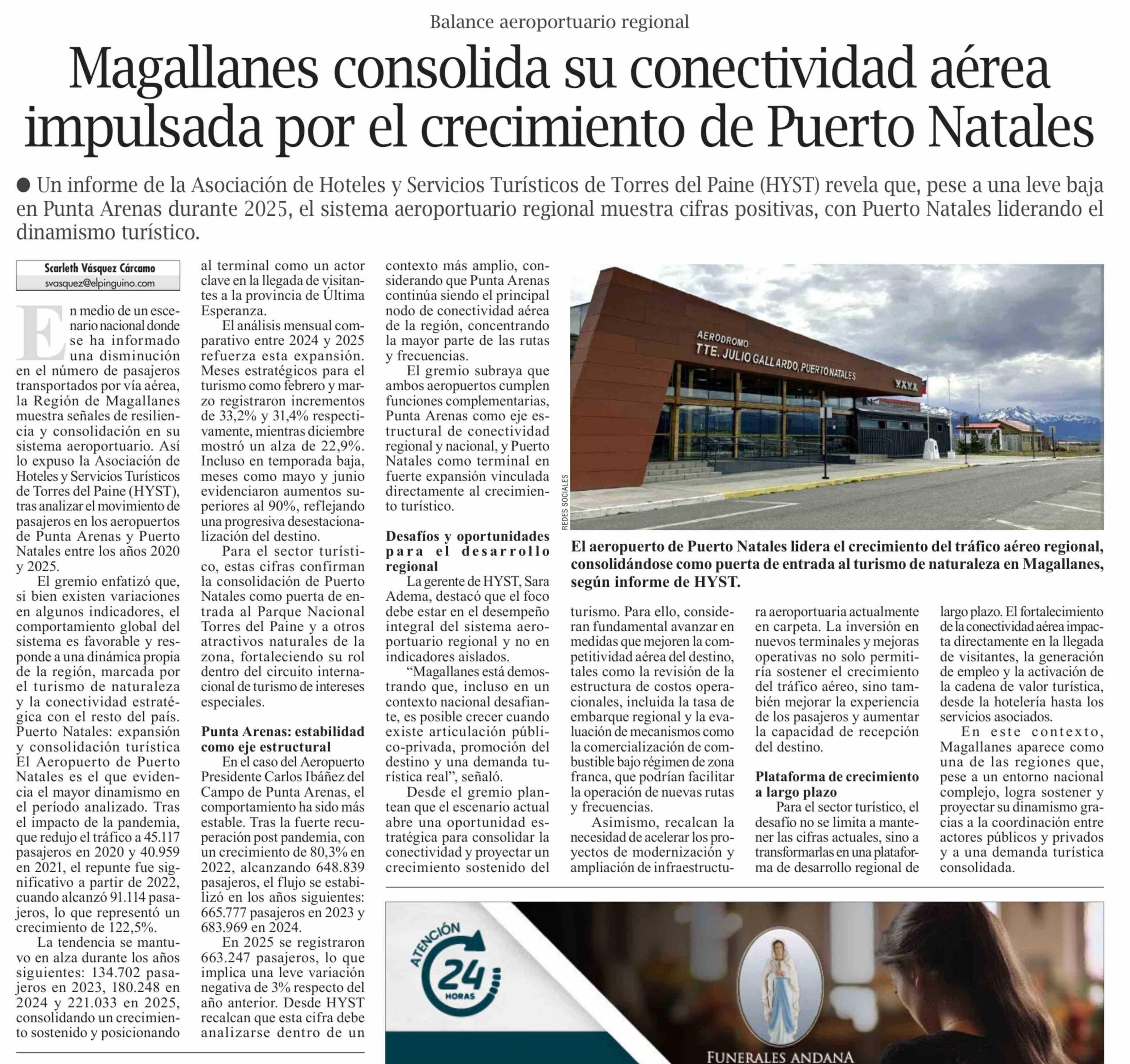 Título: Magallanes consolida su conectividad aérea impulsada por el crecimiento de Puerto Natales