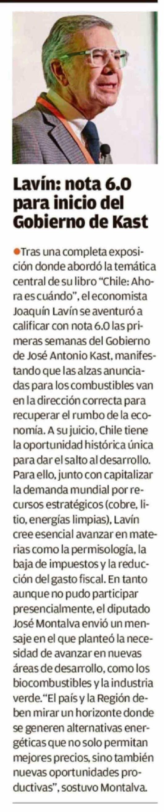 Título: Lavín: nota 6.0 para inicio del Gobierno de Kast