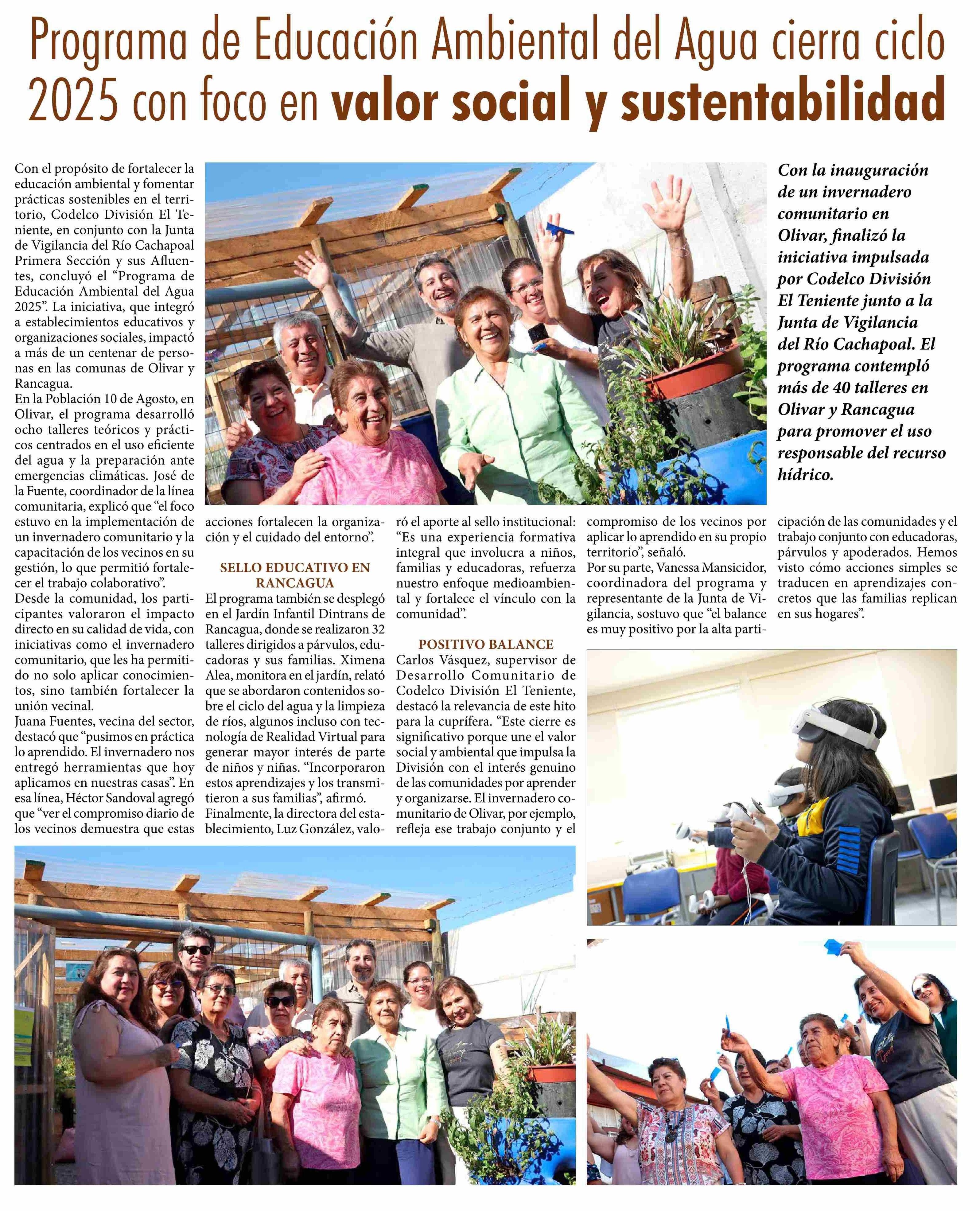 Título: Programa de Educación Ambiental del Agua cierra ciclo 2025 con foco en valor social y sustentabilidad