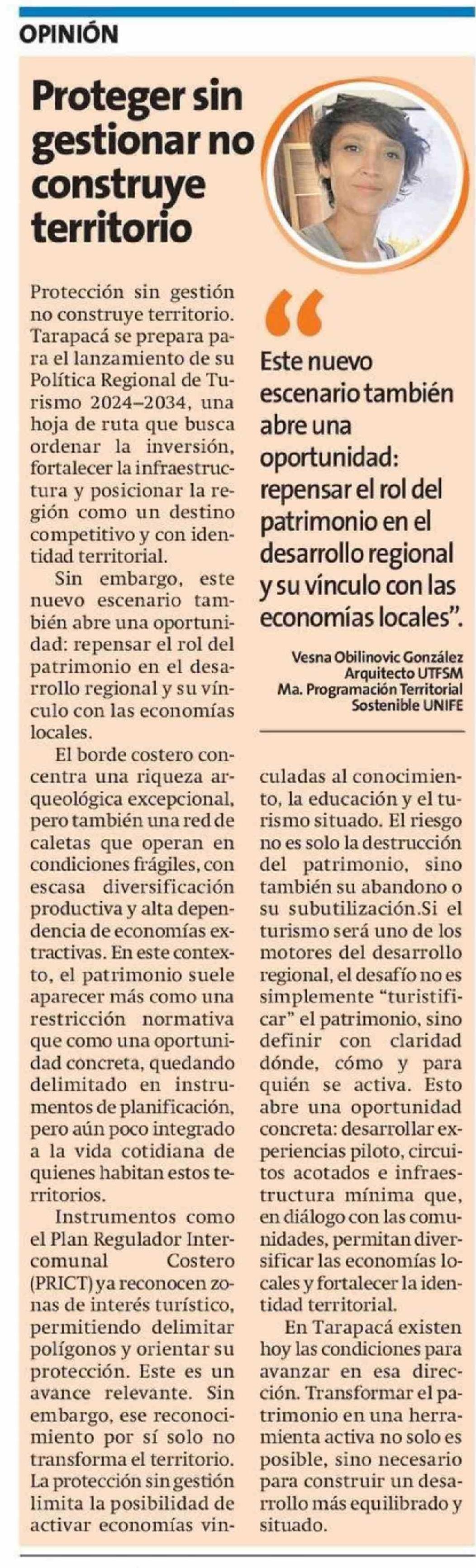 Columnas de Opinión: Proteger sin gestionar no construye territorio 23-04-2026 La Estrella de Iquique |