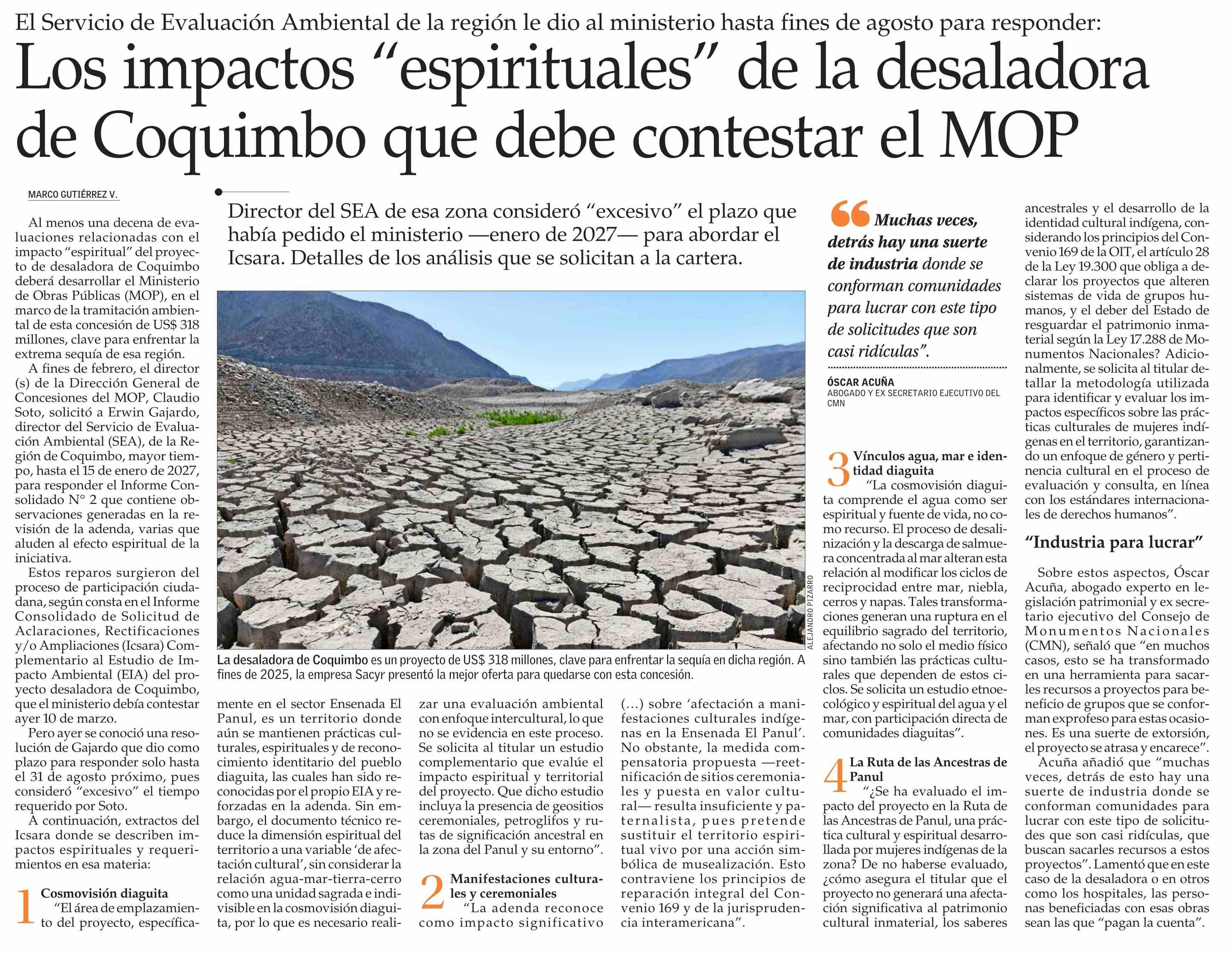 Título: Los impactos “espirituales” de la desaladora de Coquimbo que debe contestar el MOP