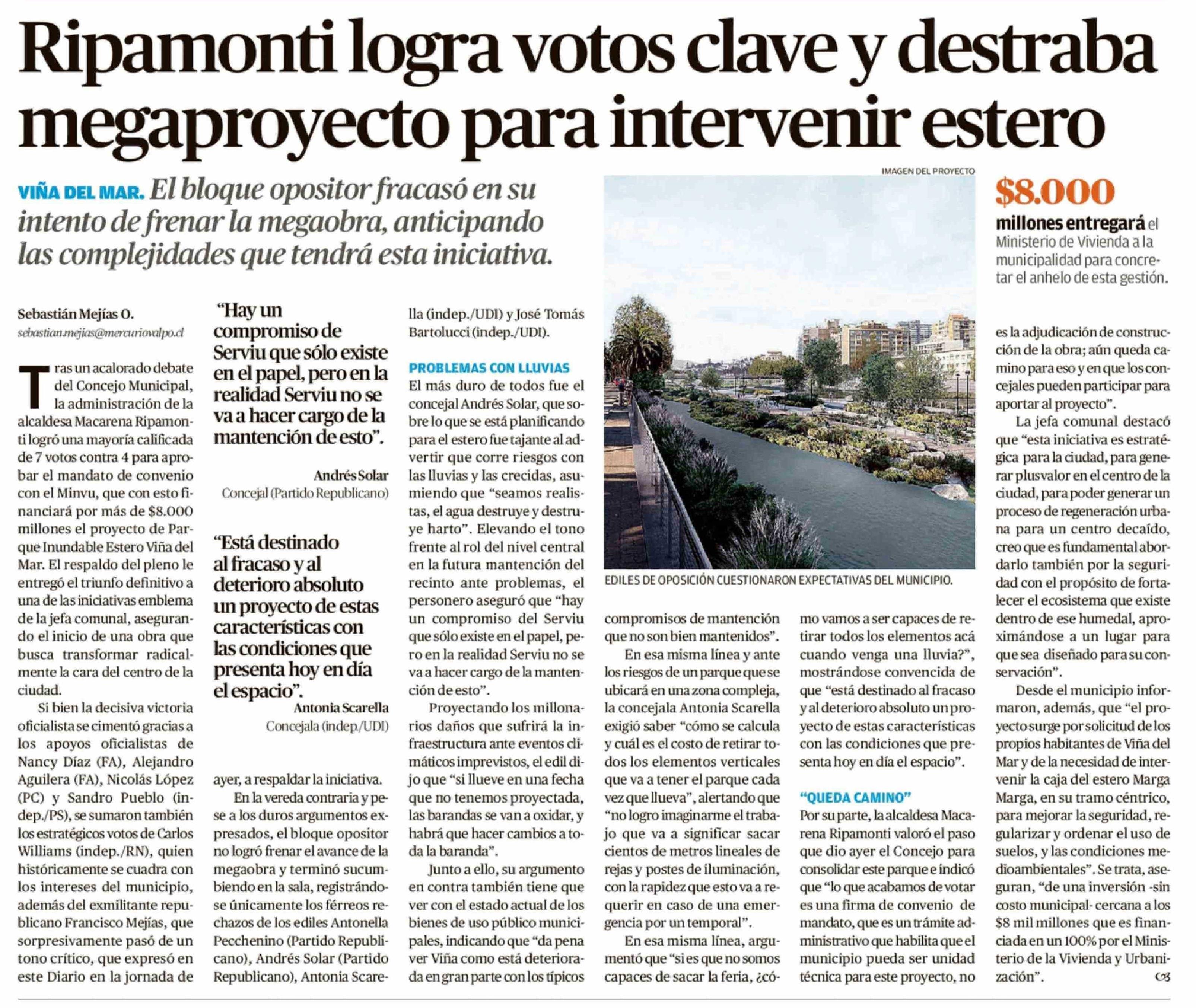 Título: Ripamonti logra votos clave y destraba megaproyecto para intervenir estero