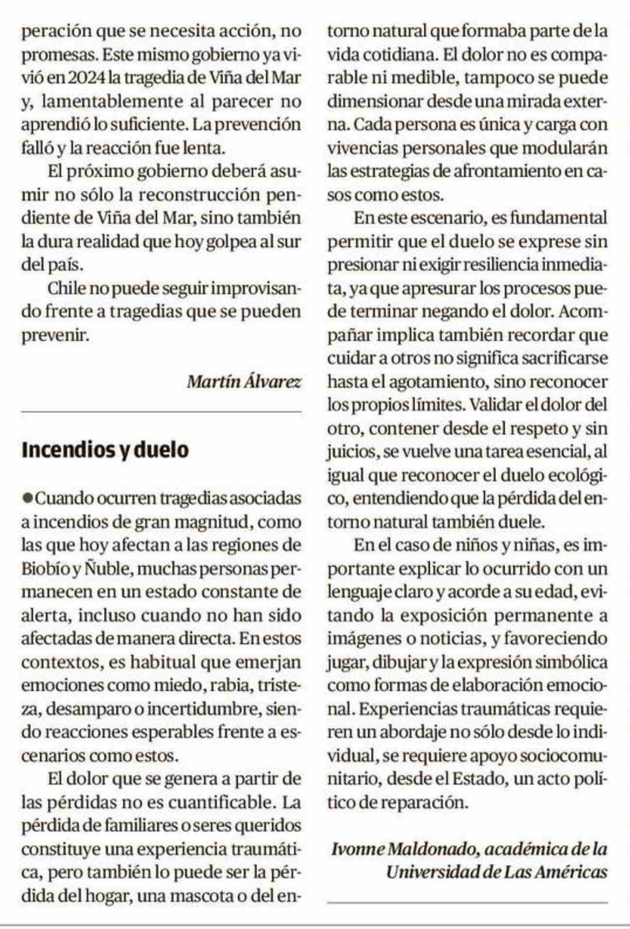 Cartas: Incendios y duelo 21-01-2026 El Austral de Osorno |