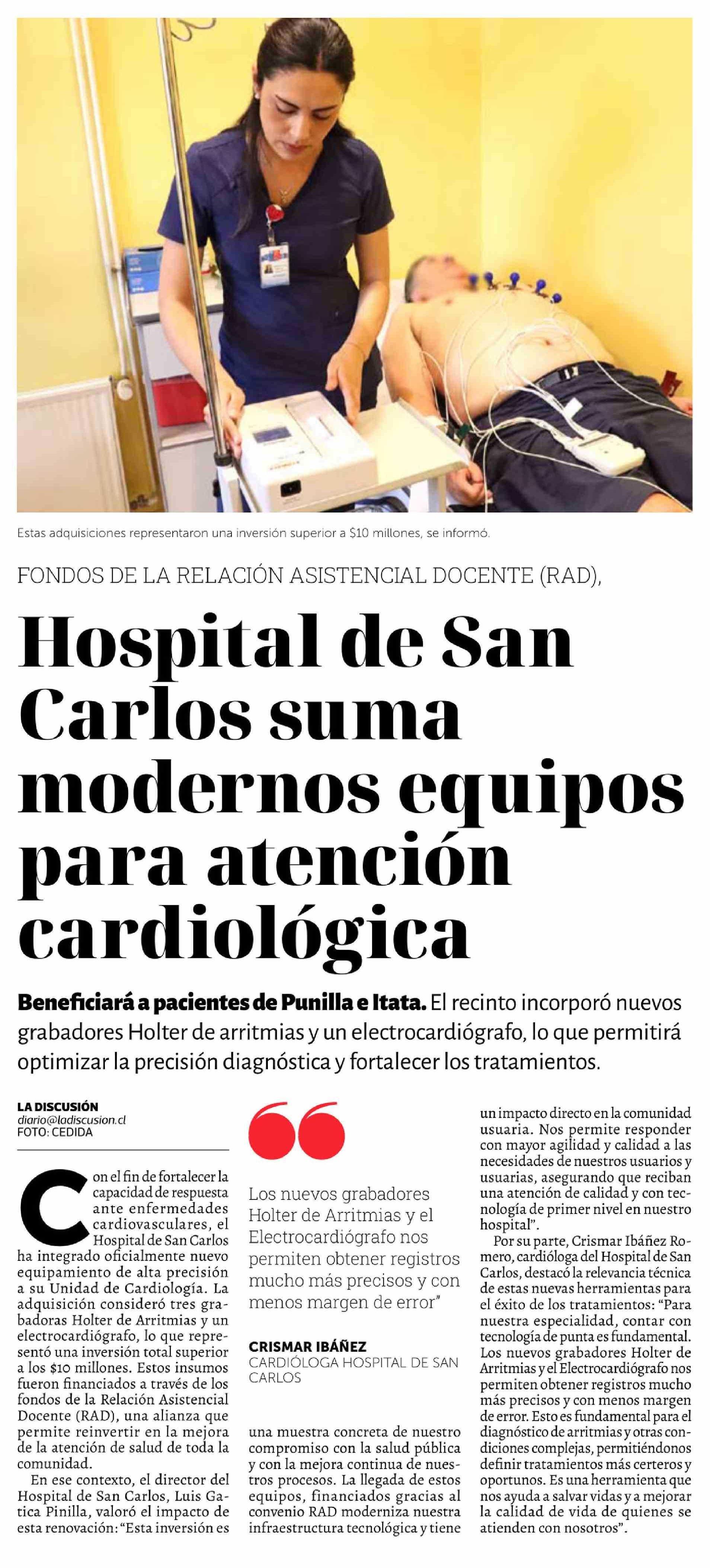 Hospital de San Carlos suma modernos equipos para atención cardiológica 09-02-2026 La Discusión |