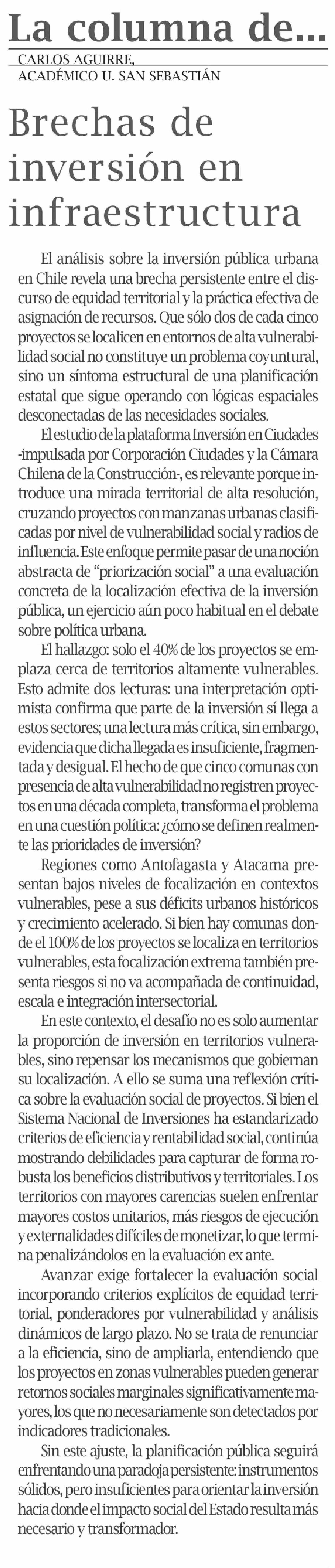 Columnas de Opinión: Brechas de inversión en infraestructura 11-02-2026 El Pingüino |