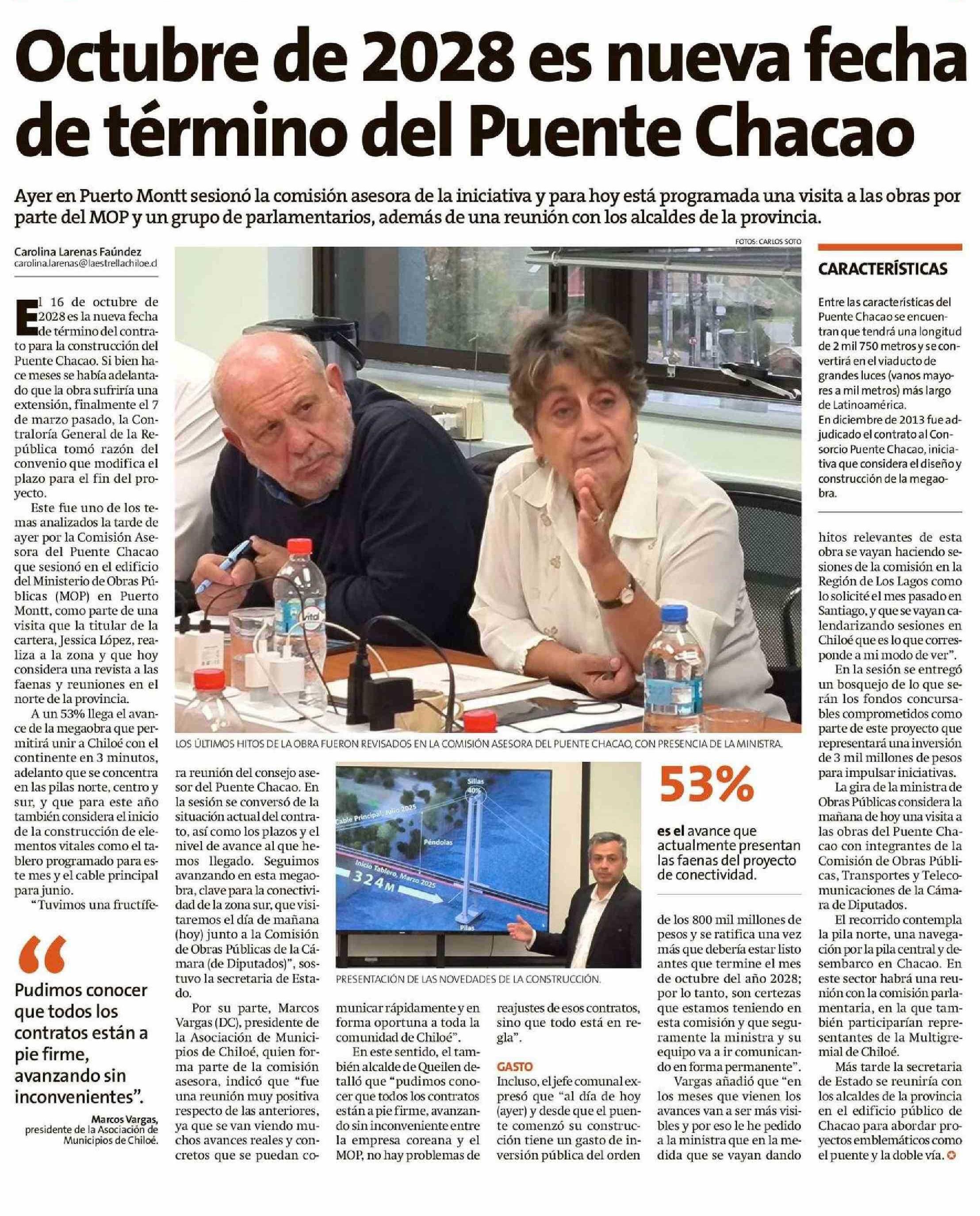 Octubre de 2028 es nueva fecha de término del Puente Chacao 20-03-2025 La Estrella de Chiloé |
