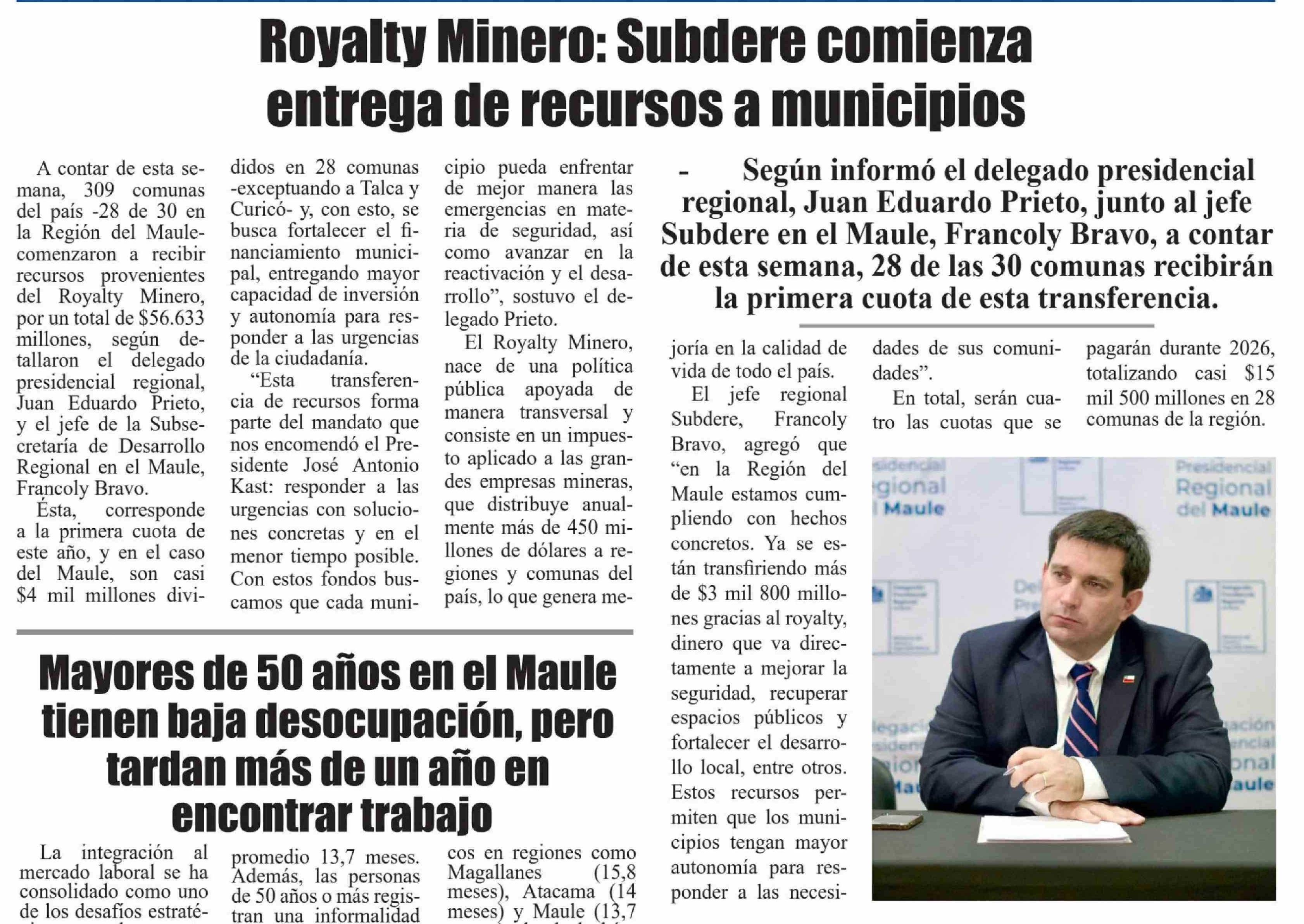 Royalty Minero: Subdere comienza entrega de recursos a municipios 17-04-2026 El Heraldo |