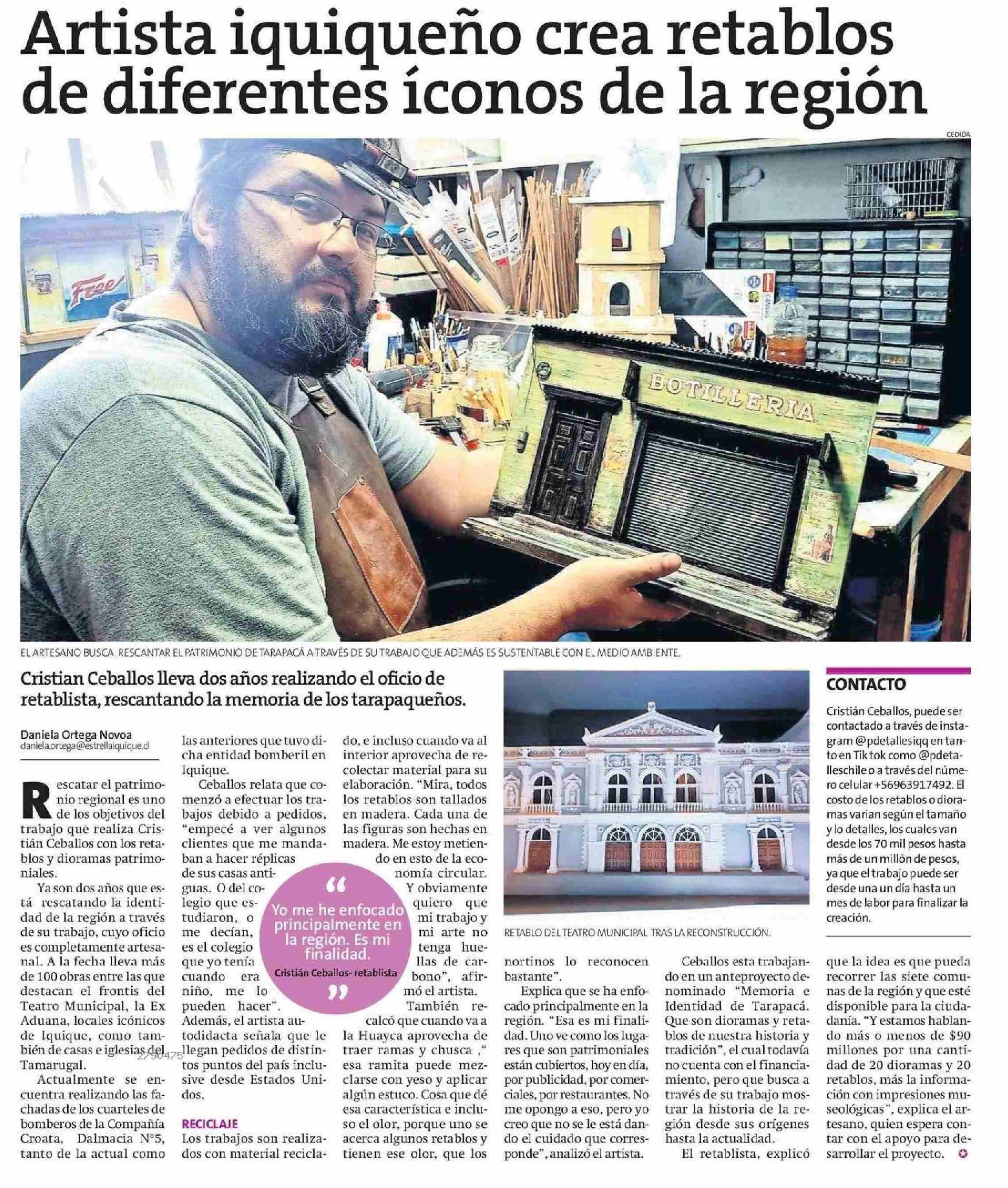 Artista iquiqueño crea retablos de diferentes íconos de la región 19-06-2025 La Estrella de Iquique |