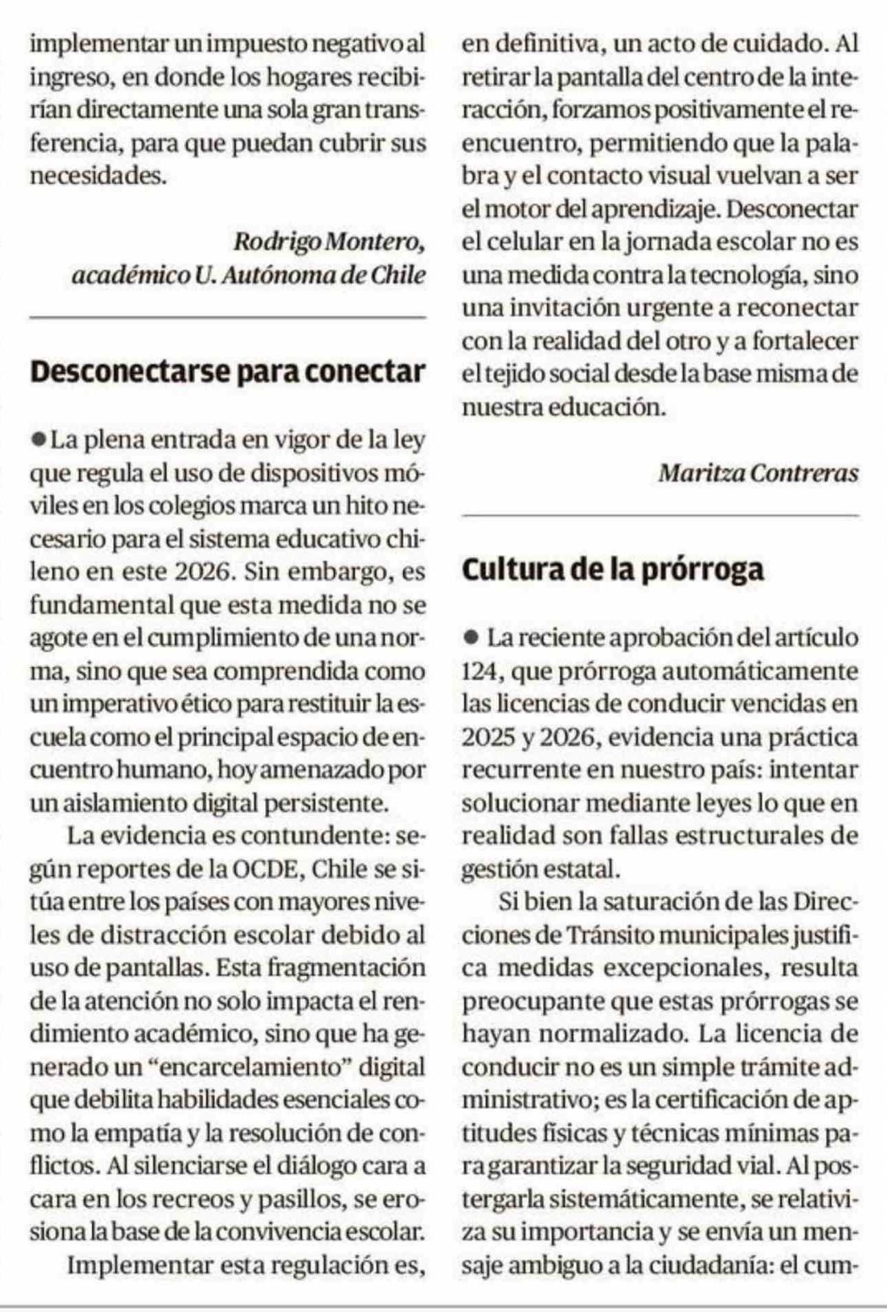 Cartas: Desconectarse para conectar 27-01-2026 El Austral de Osorno |