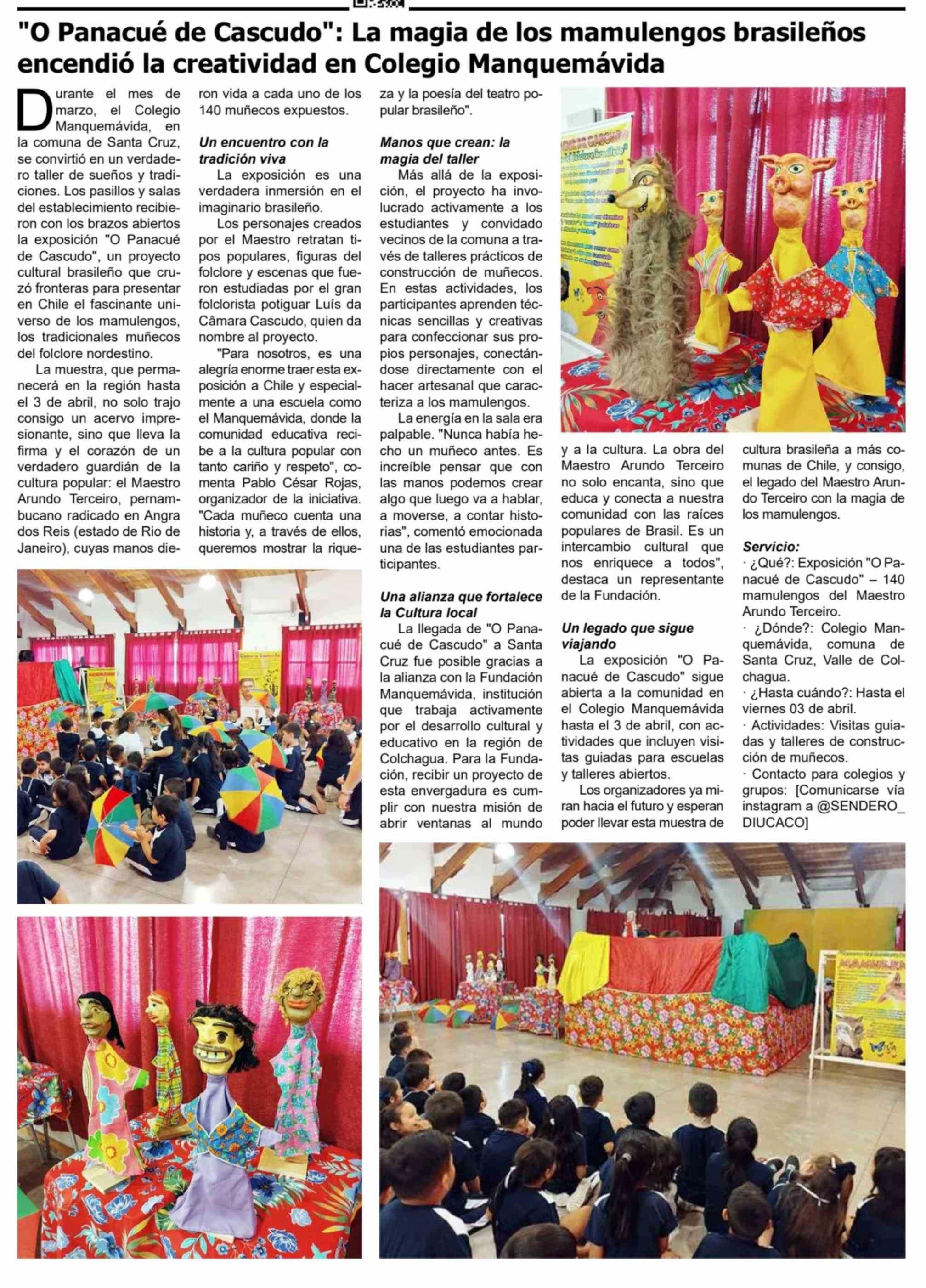 Título: "O Panacue de Cascudo": La magia de los mamulengos brasileños encendió la creatividad en Colegio Manquemávida