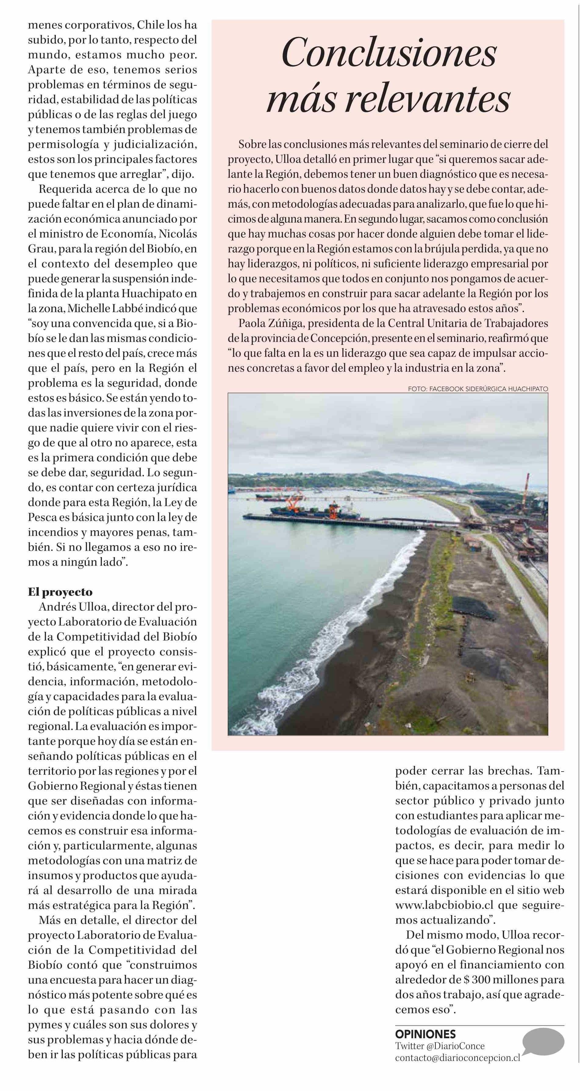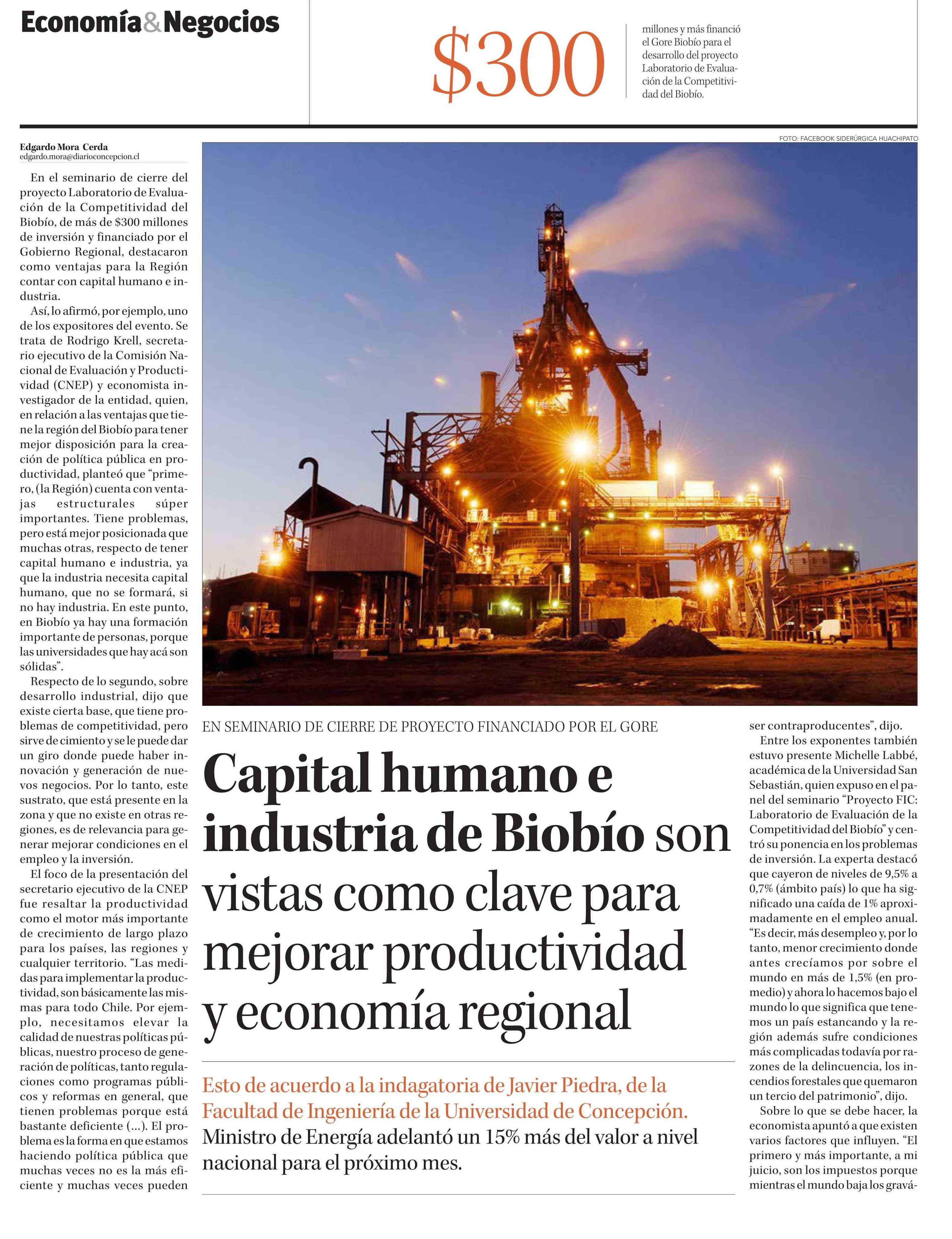 Capital humano e industria de Biobío son vistas como clave para mejorar productividad y economía regional 01-09-2024 Diario Concepción |