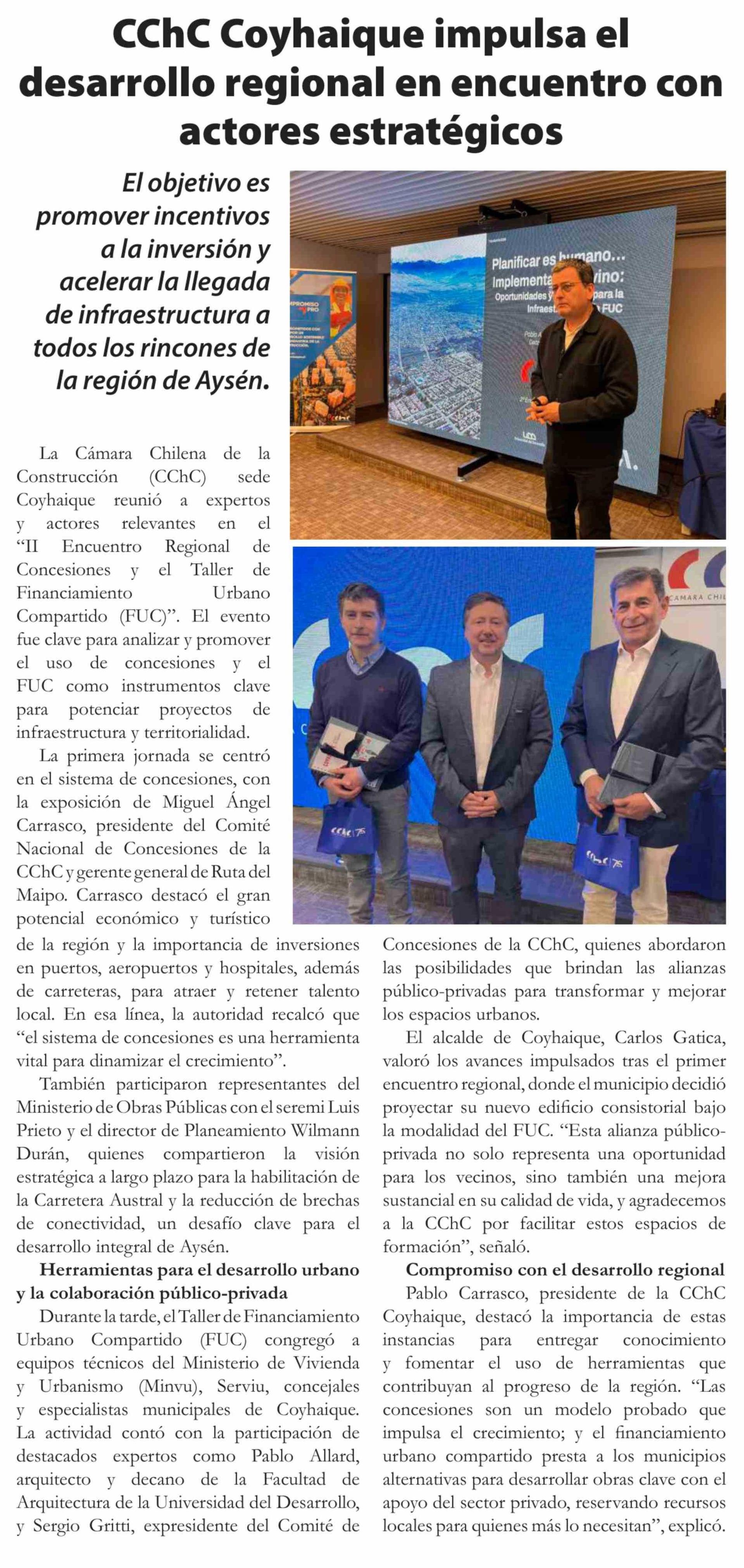 | Título: | CChC Coyhaique impulsa el desarrollo regional en encuentro con actores estratégicos |