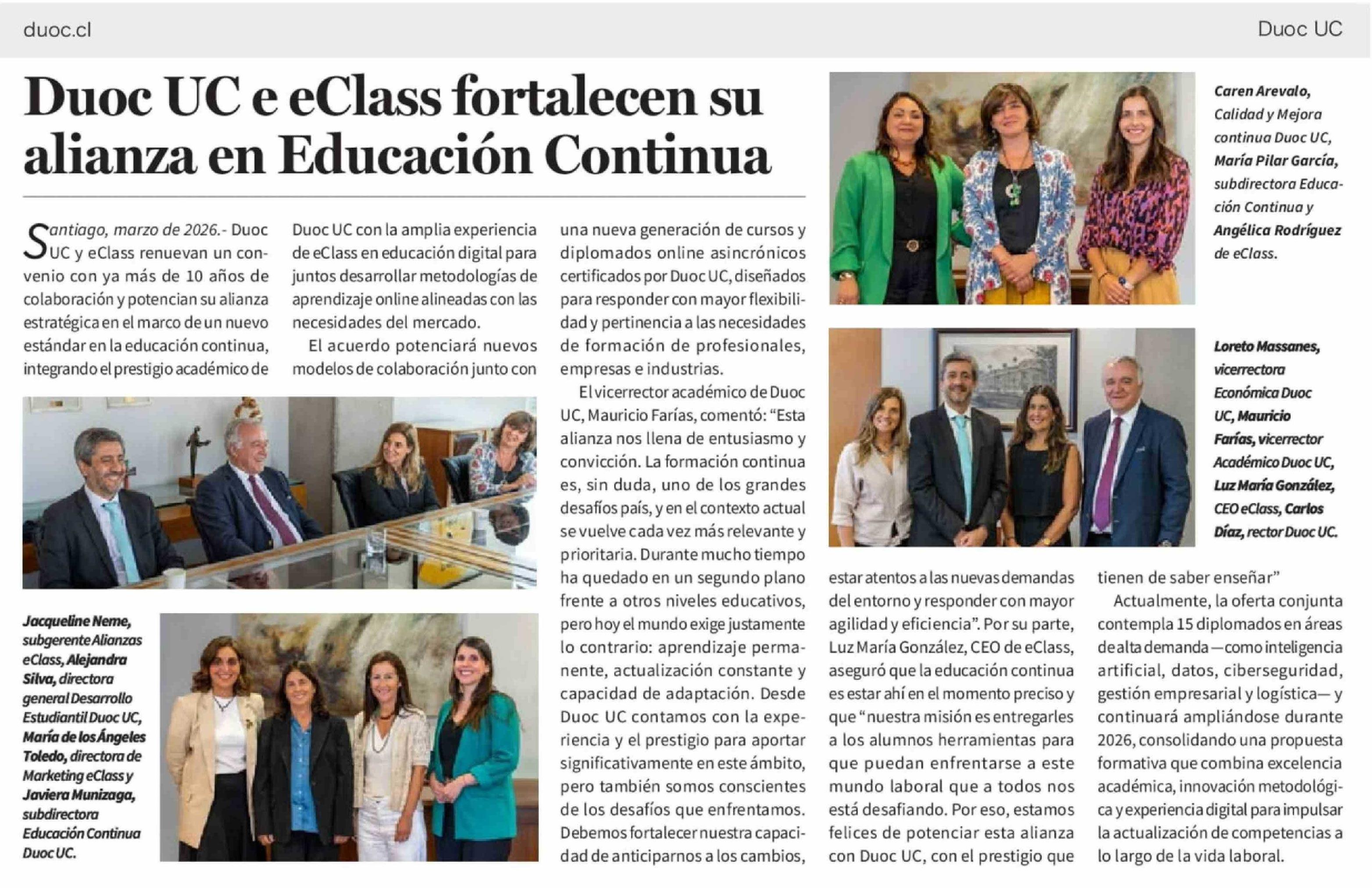 Duoc UC e eClass fortalecen su alianza en Educación Continua 19-03-2026 La Tercera |