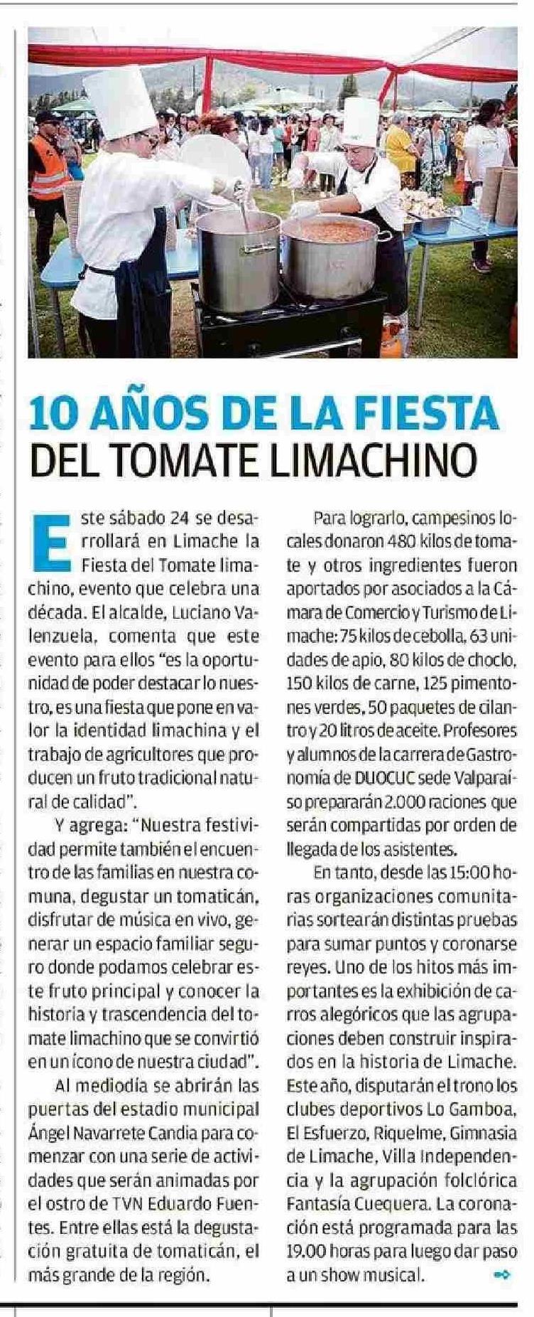 10 AÑOS DE LA FIESTA DEL TOMATE LIMACHINO 18-01-2026 El Mercurio de Valparaíso |