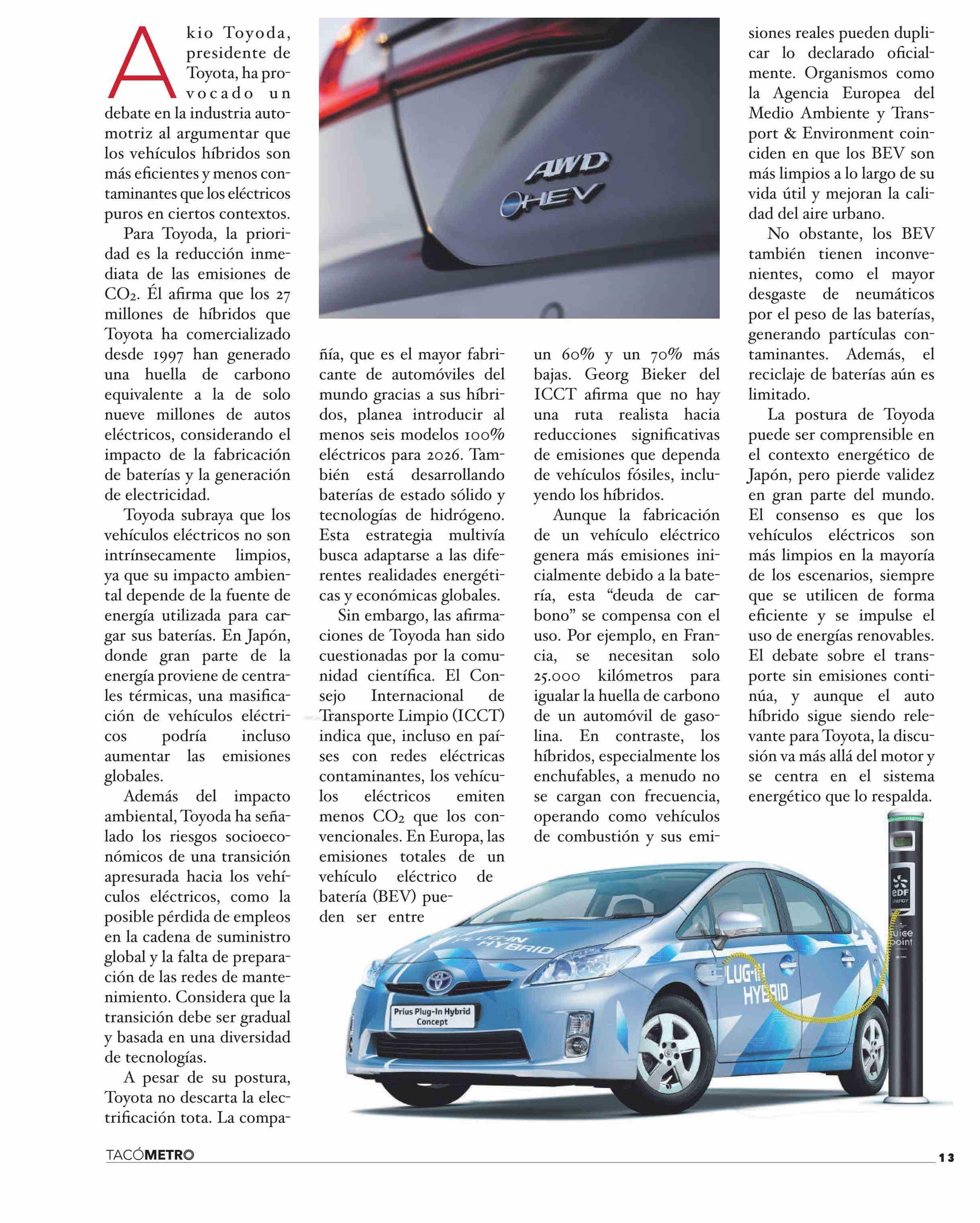 TOYOTA YLA DESCARBONIZACIÓN: ¡Híbridos vs. Eléctricos? 27-06-2025 Publimetro |