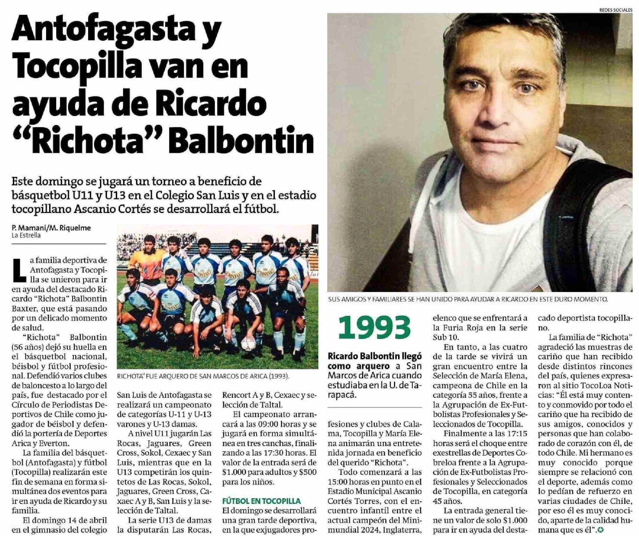 Antofagasta y Tocopilla van en ayuda de Ricardo “Richota” Balbontin 12-04-2024 La Estrella de Antofagasta |