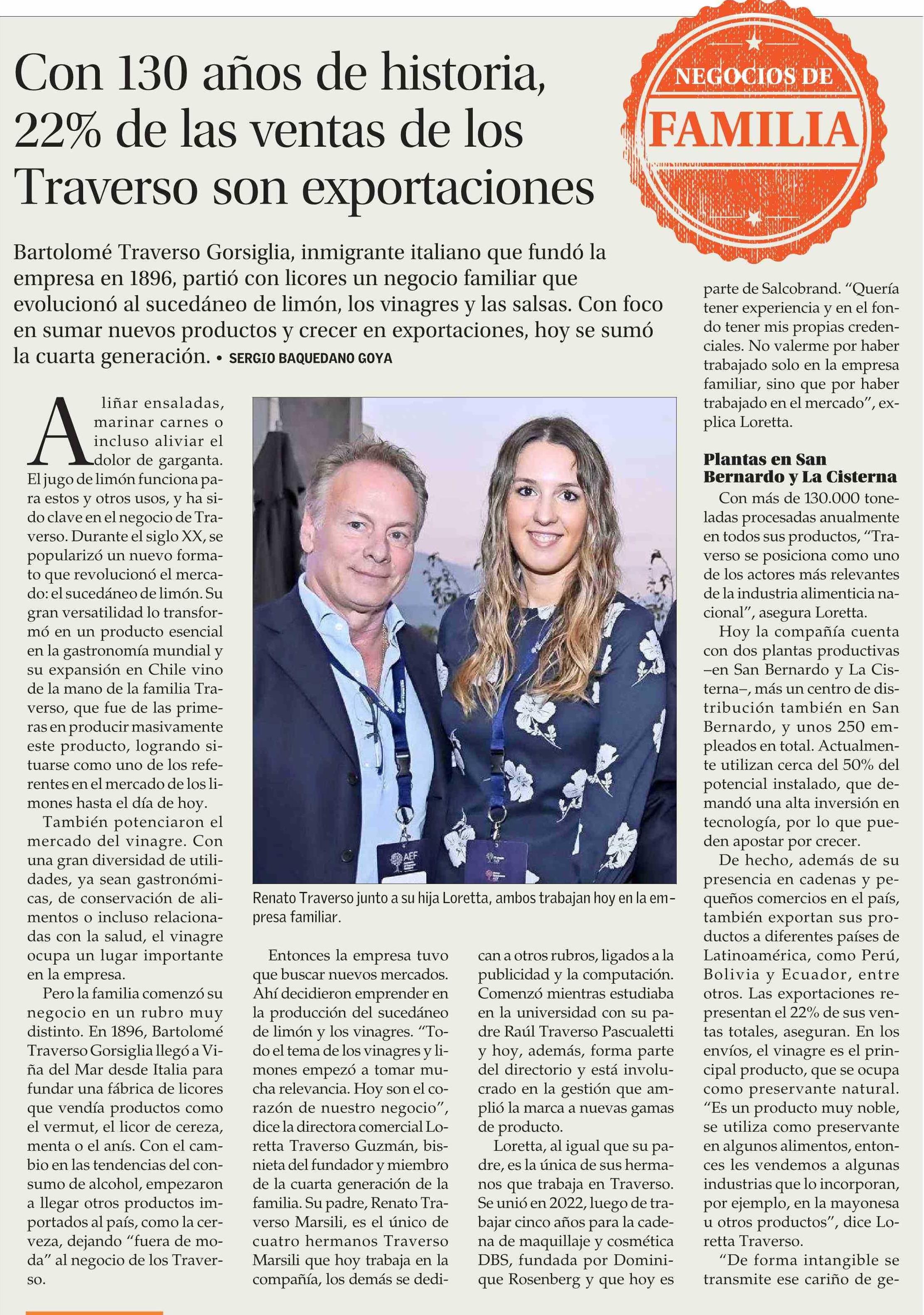 Con 130 años de historia, 22% de las ventas de los Traverso son exportaciones 25-01-2026 El Mercurio |