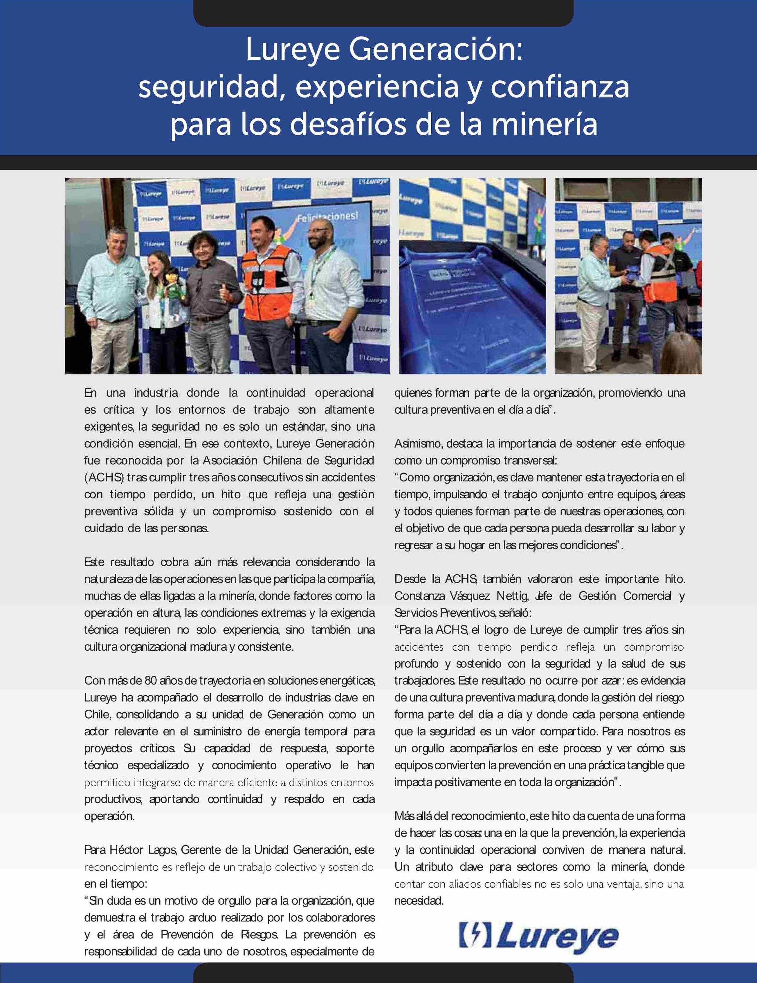 Lureye Generación: seguridad, experiencia y confianza para Los desafíos de La minería 15-04-2026 Revista Nueva Minería & Energía |