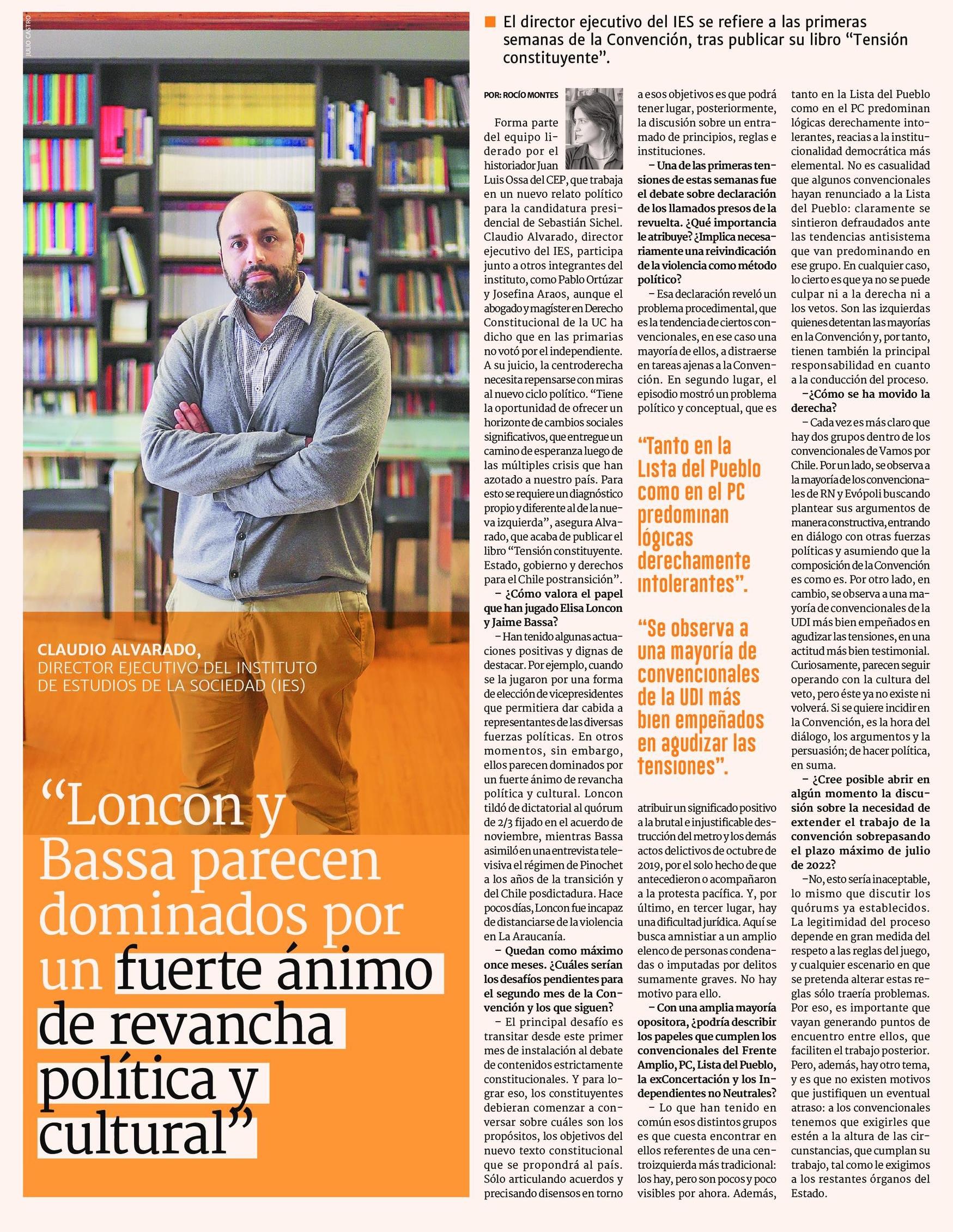 "Loncon y Bassa parecen dominados por un fuerte ánimo de revancha política y cultural" 11-08-2021 Diario Financiero |
