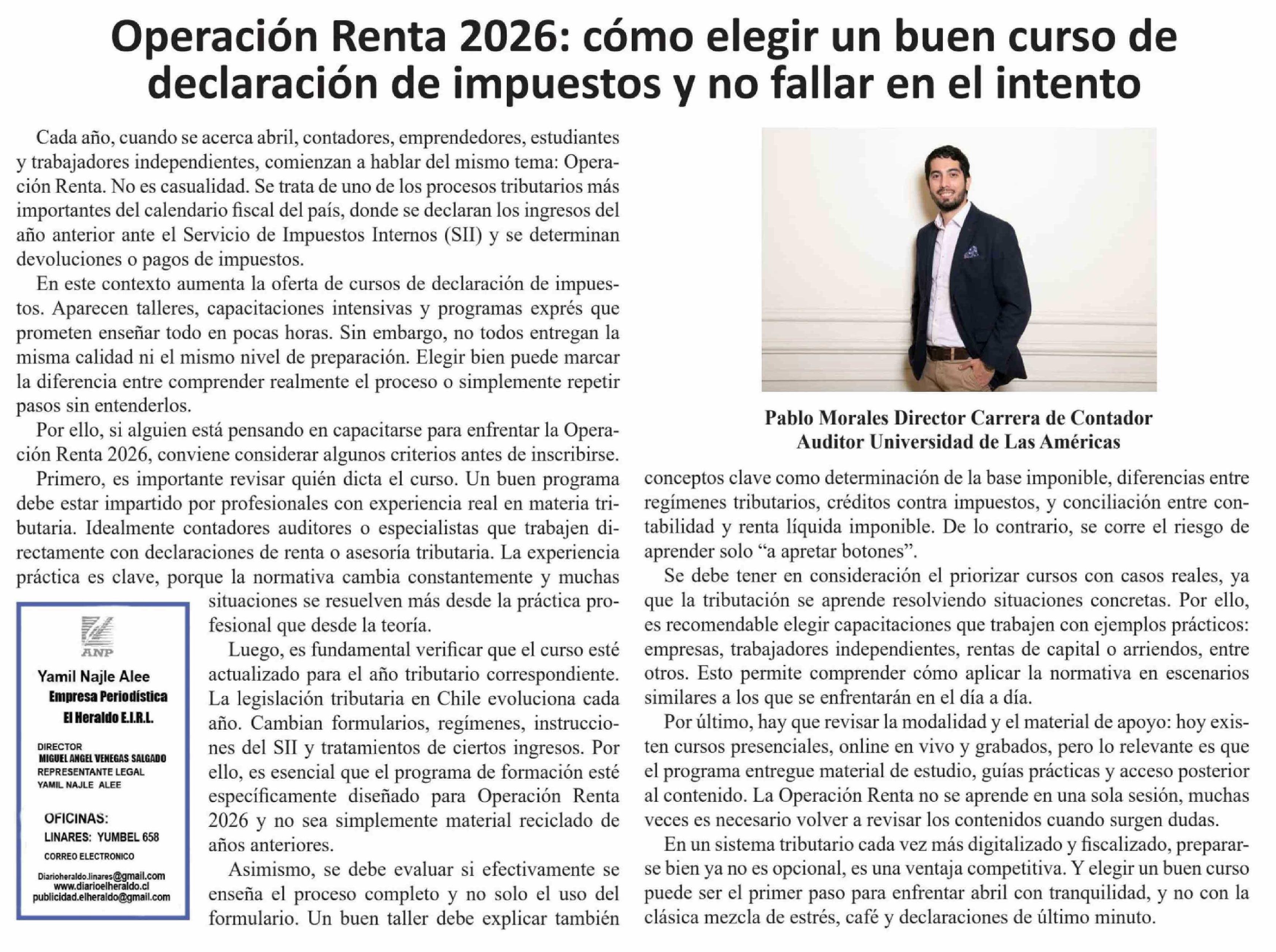 Título: Columnas de Opinión: Operación Renta 2026: cómo elegir un buen curso de declaración de impuestos y no fallar en el intento