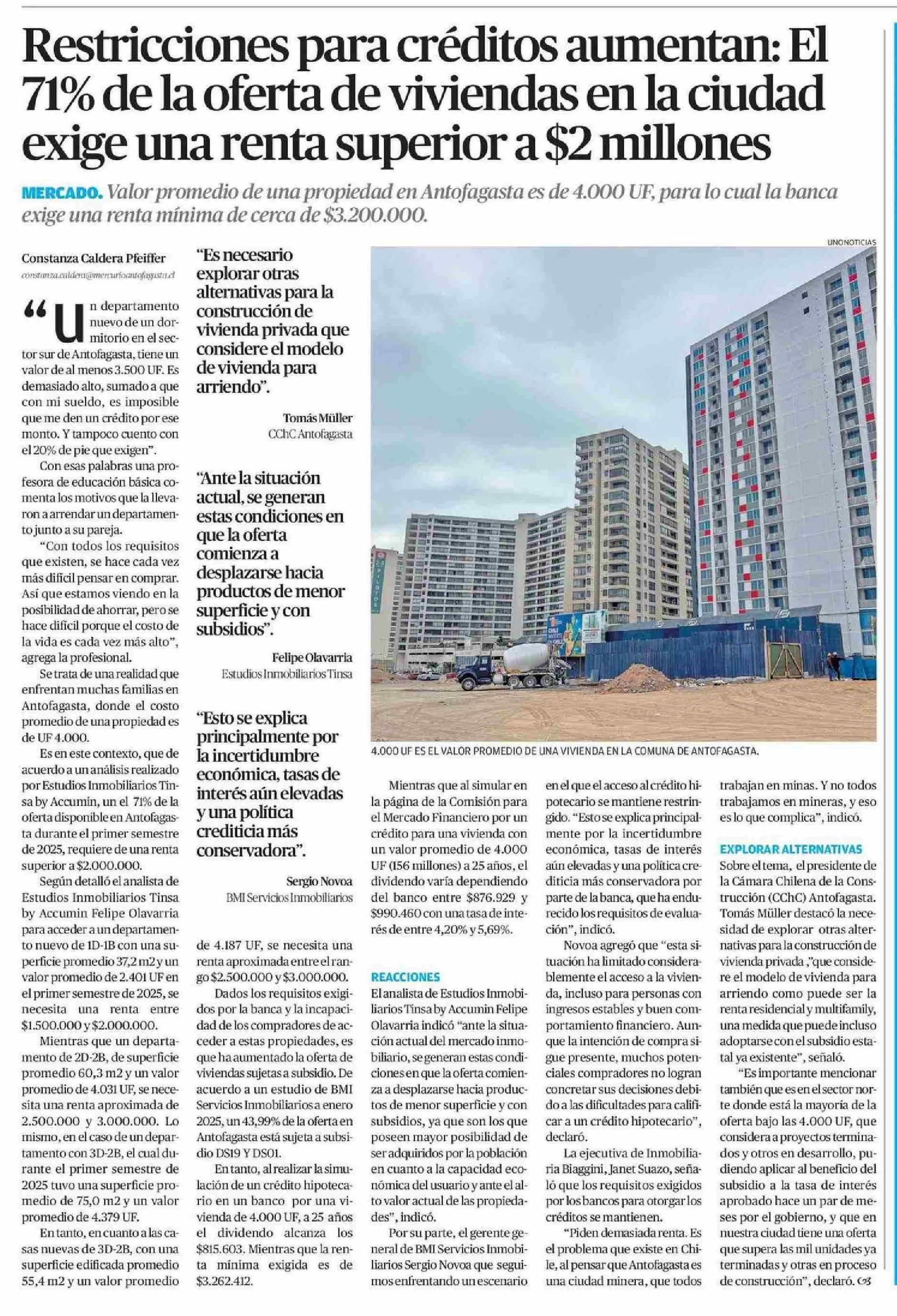 Título: Restricciones para créditos aumentan: El 71% de la oferta de viviendas en la ciudad exige una renta superior a $2 millones