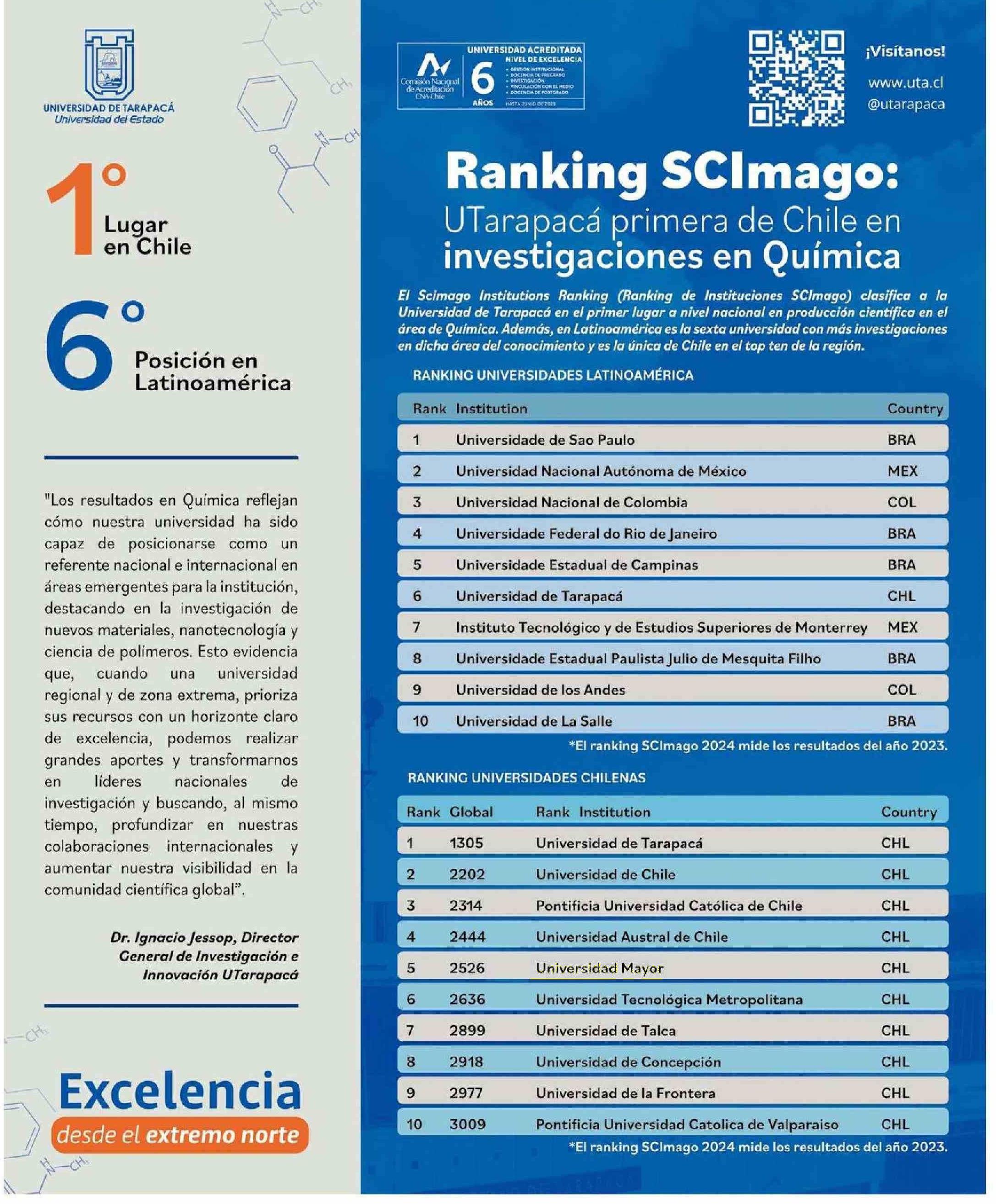 | Título: | AVISO PUBLICITARIO: Ranking SCImago: Tarapacá primera de Chile en investigaciones en Química |