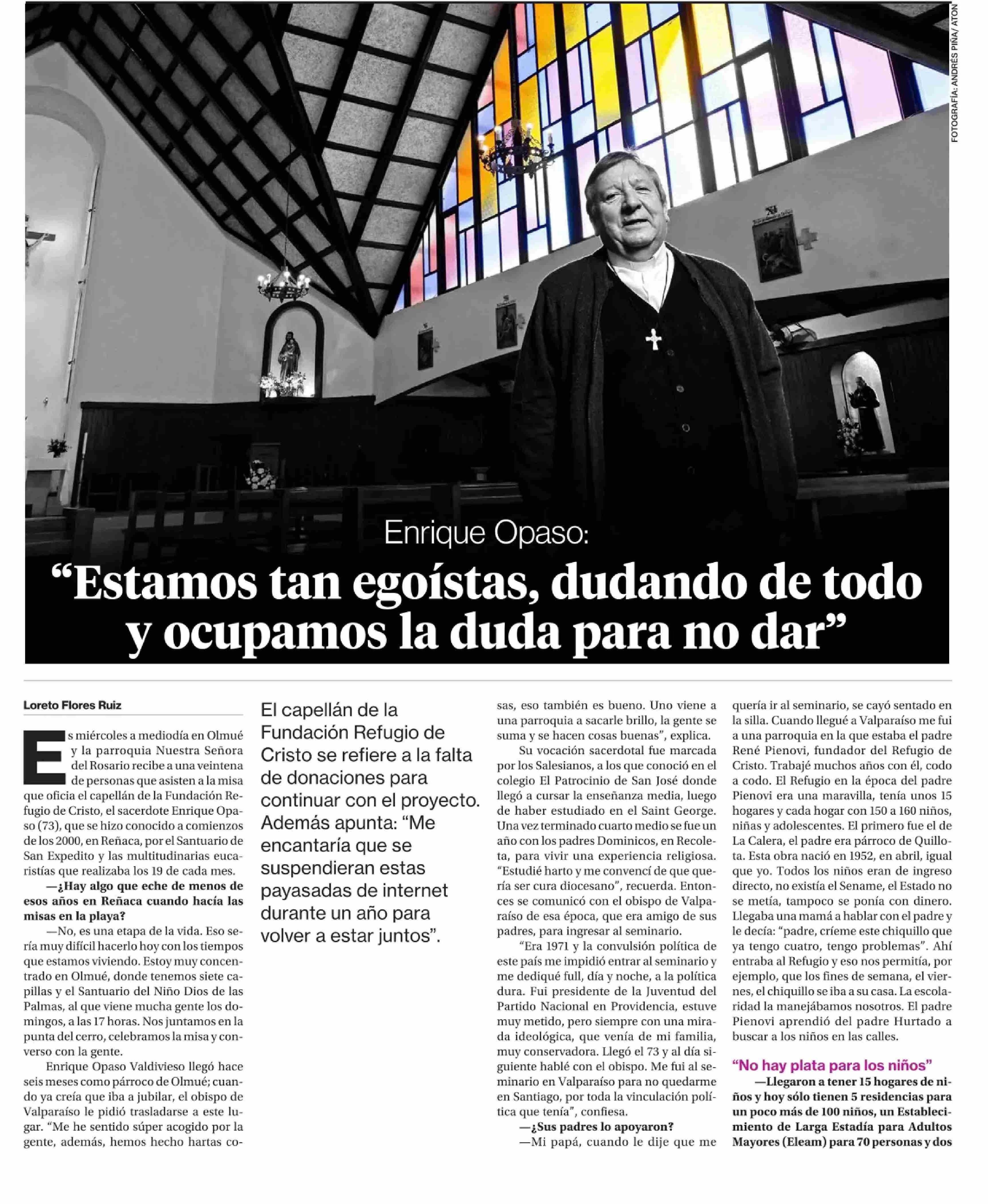 "Estamos tan egoístas, dudando de todo y ocupamos la duda para no dar" 19-06-2025 La Segunda |