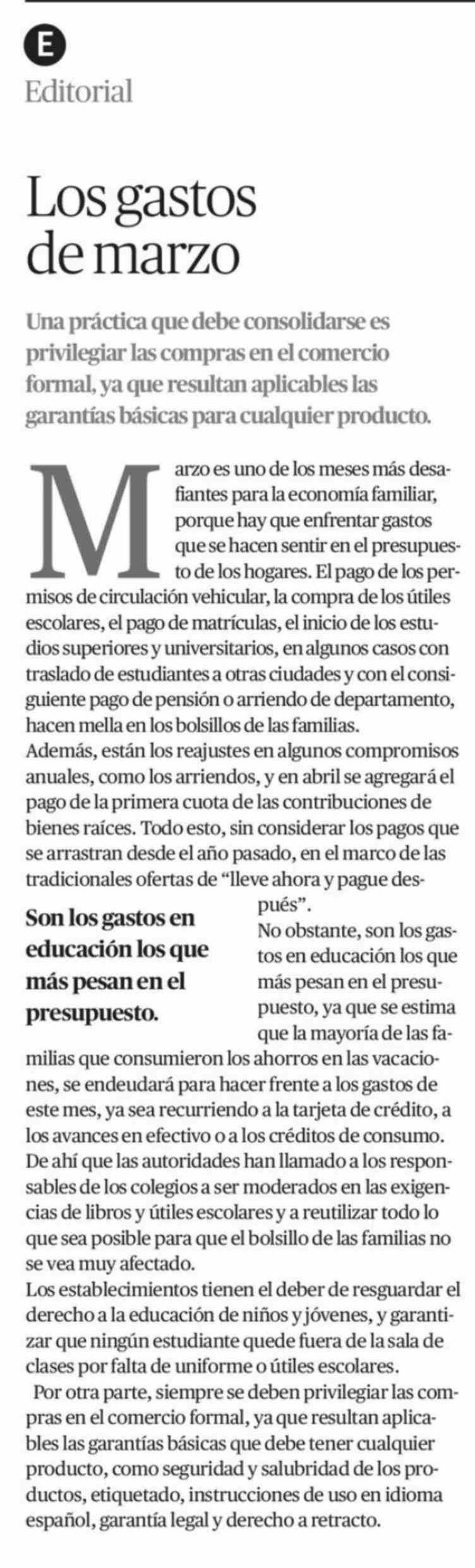 | Título: | Editorial: Los gastos de marzo |