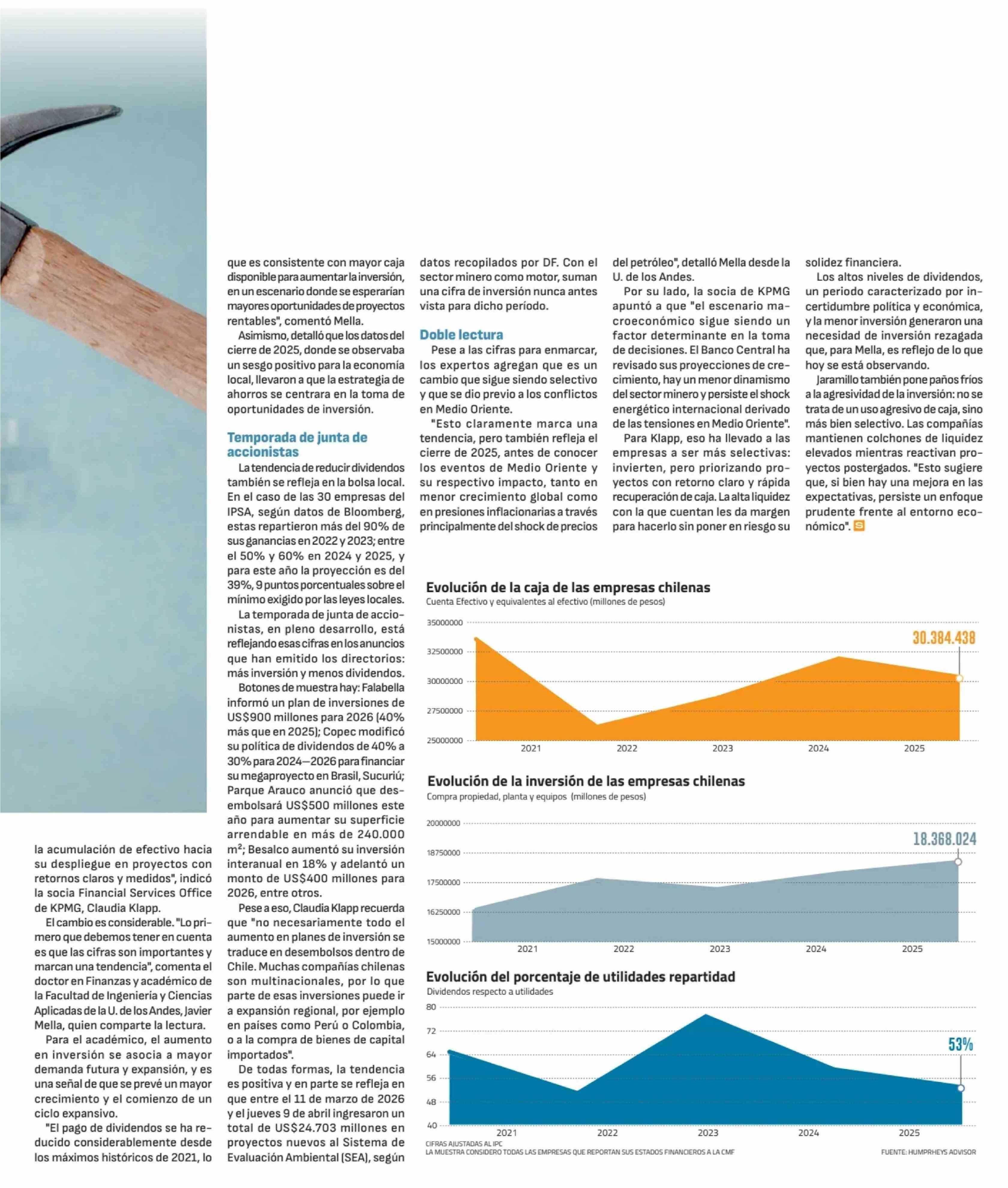 Título: Con altos niveles de ahorro, la reinversión de las empresas chilenas toma fuerza y los repartos de dividendos caen