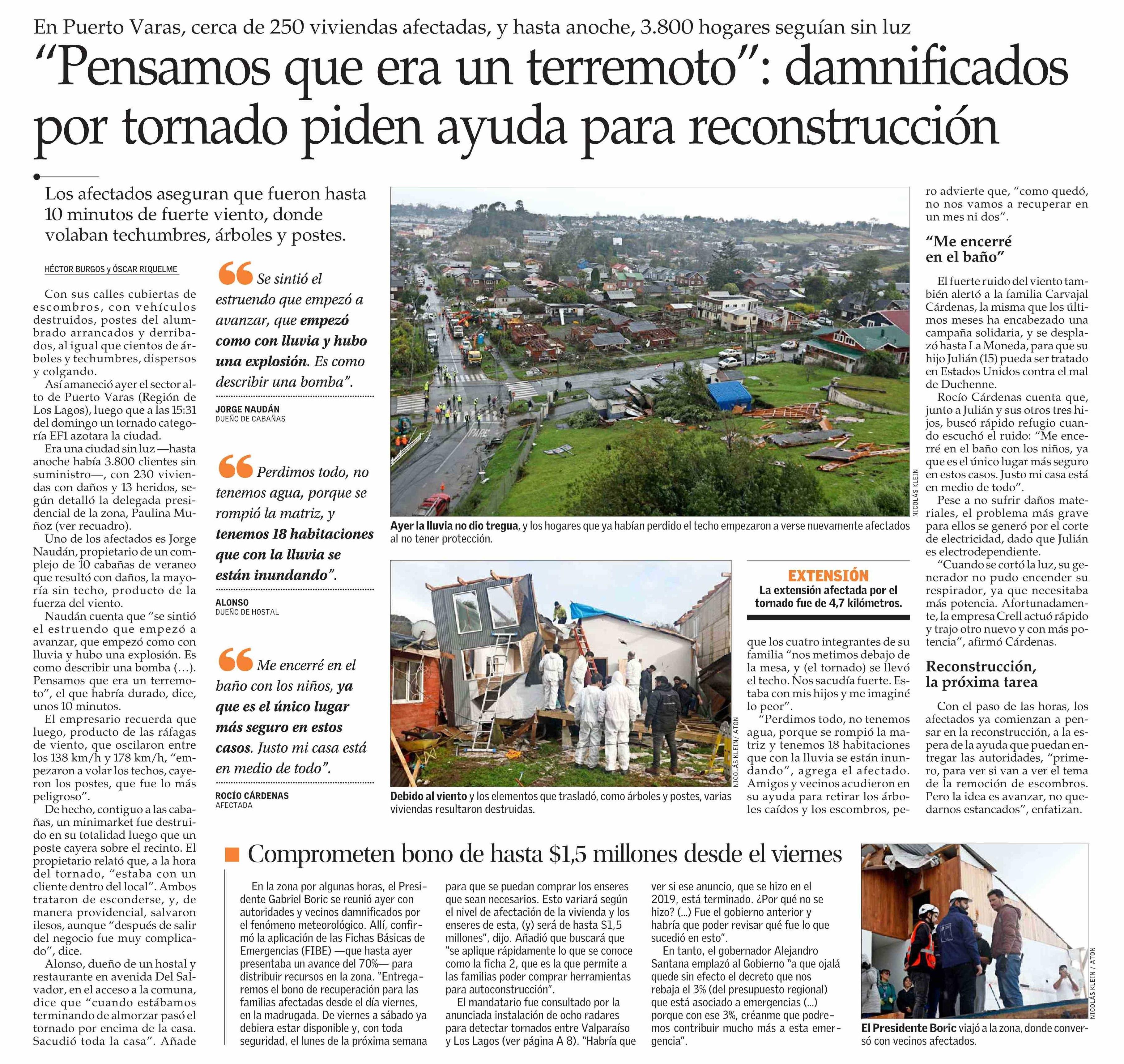 "Pensamos que era un terremoto": damnificados por tornado piden ayuda para reconstrucción 27-05-2025 El Mercurio |