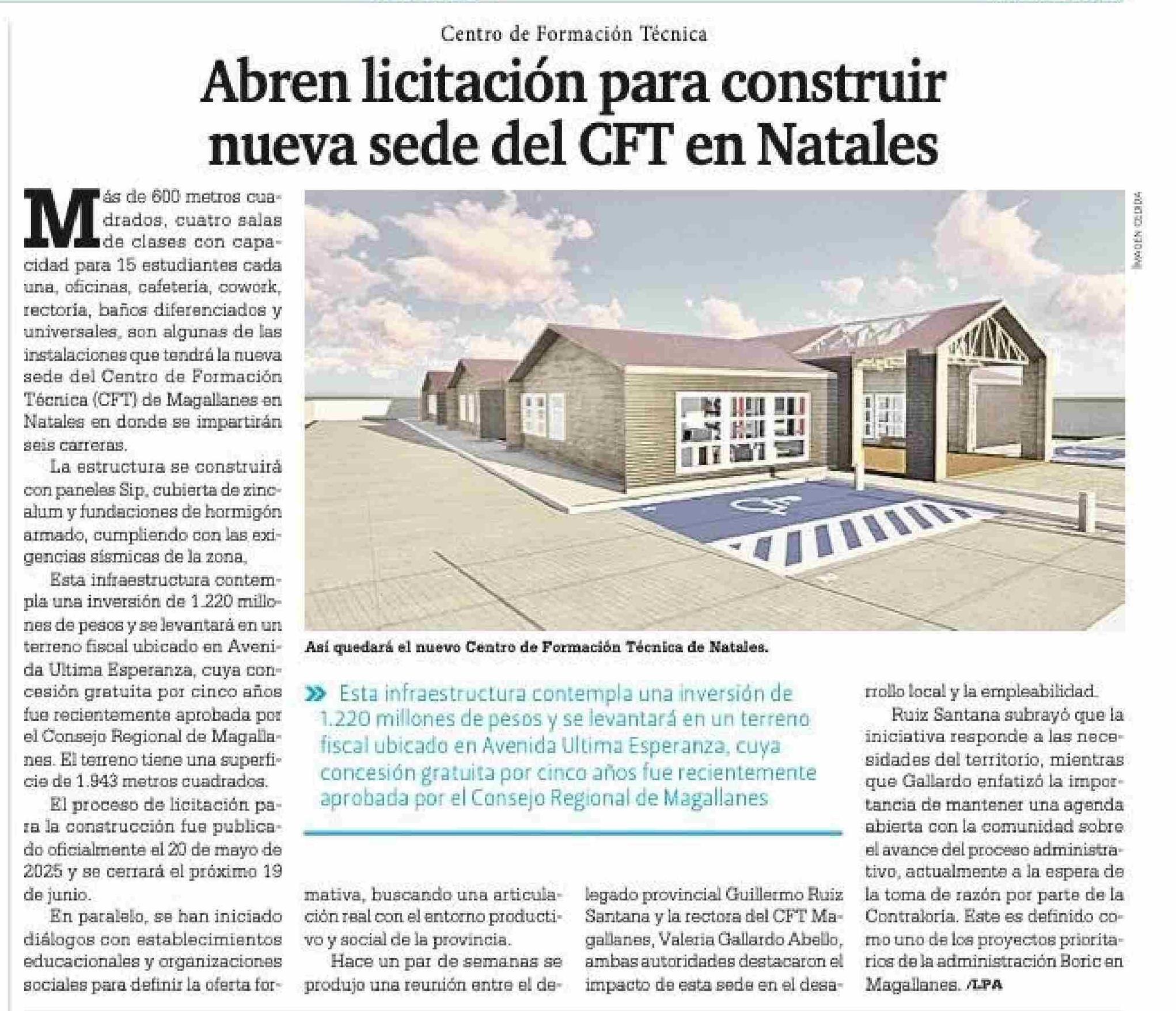 Título: Abren licitación para construir nueva sede del CFT en Natales
