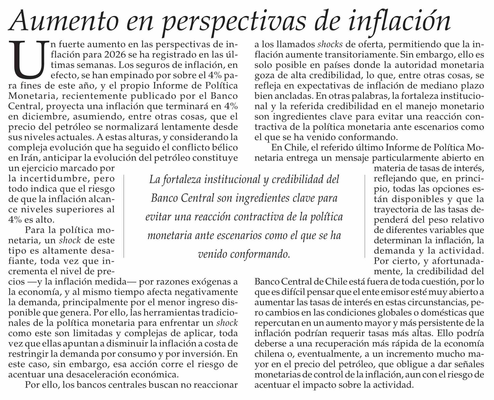 Editorial: Aumento en perspectivas de inflación 01-04-2026 El Mercurio |