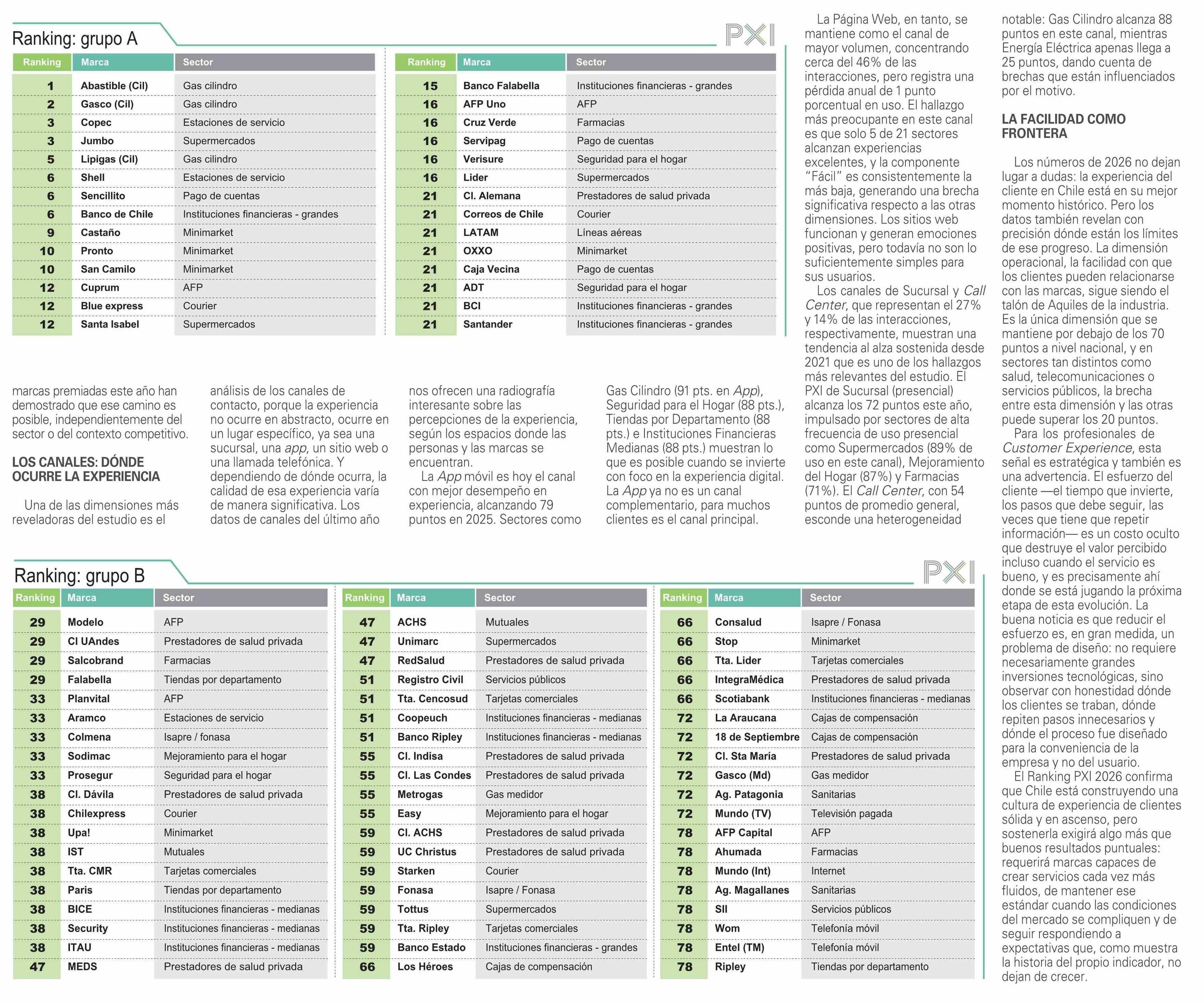 Ranking PXI 2026: Radiografía de la experiencia de clientes en Chile 22-03-2026 El Mercurio |