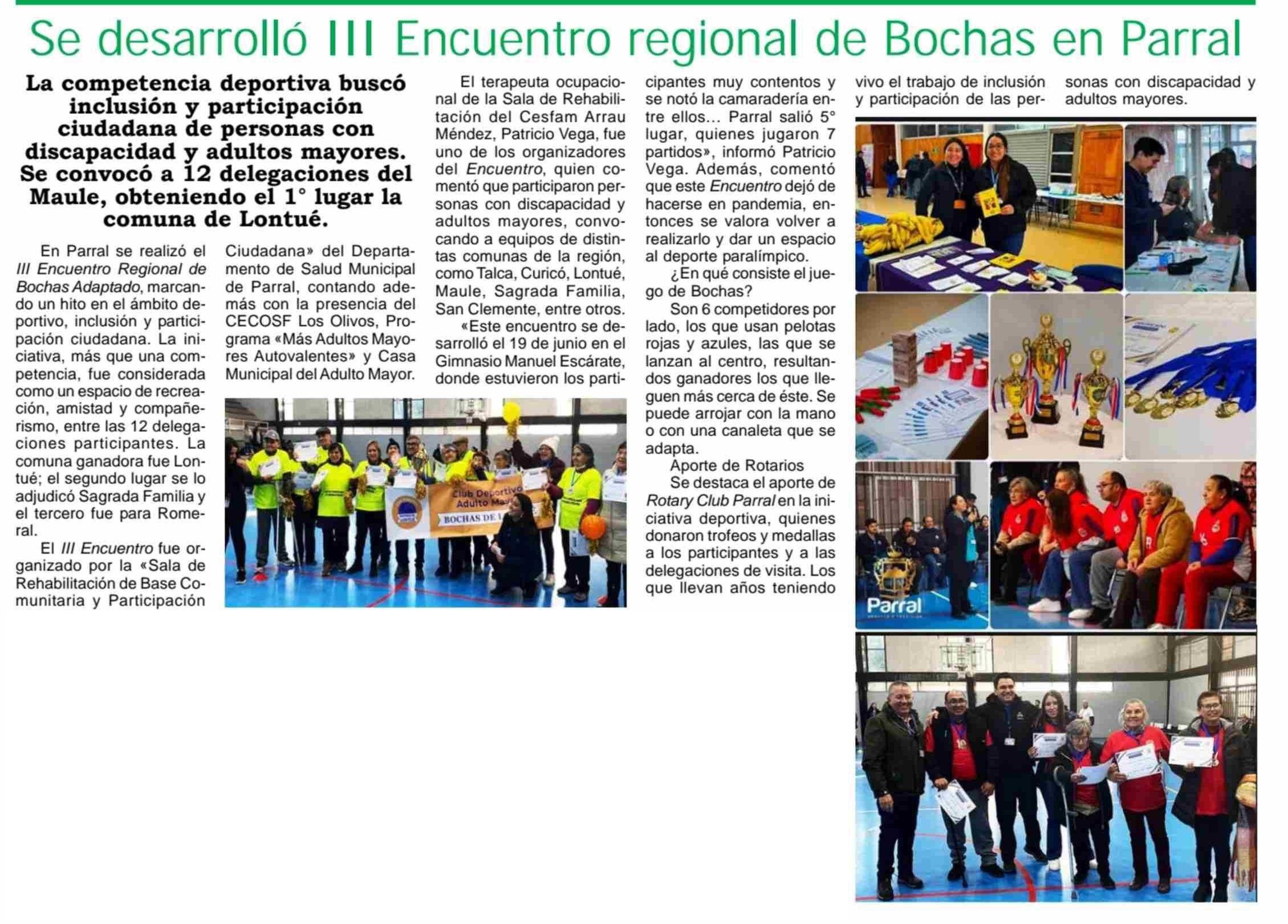 Se desarrolló III Encuentro regional de Bochas en Parral 25-06-2025 Maule Hoy |