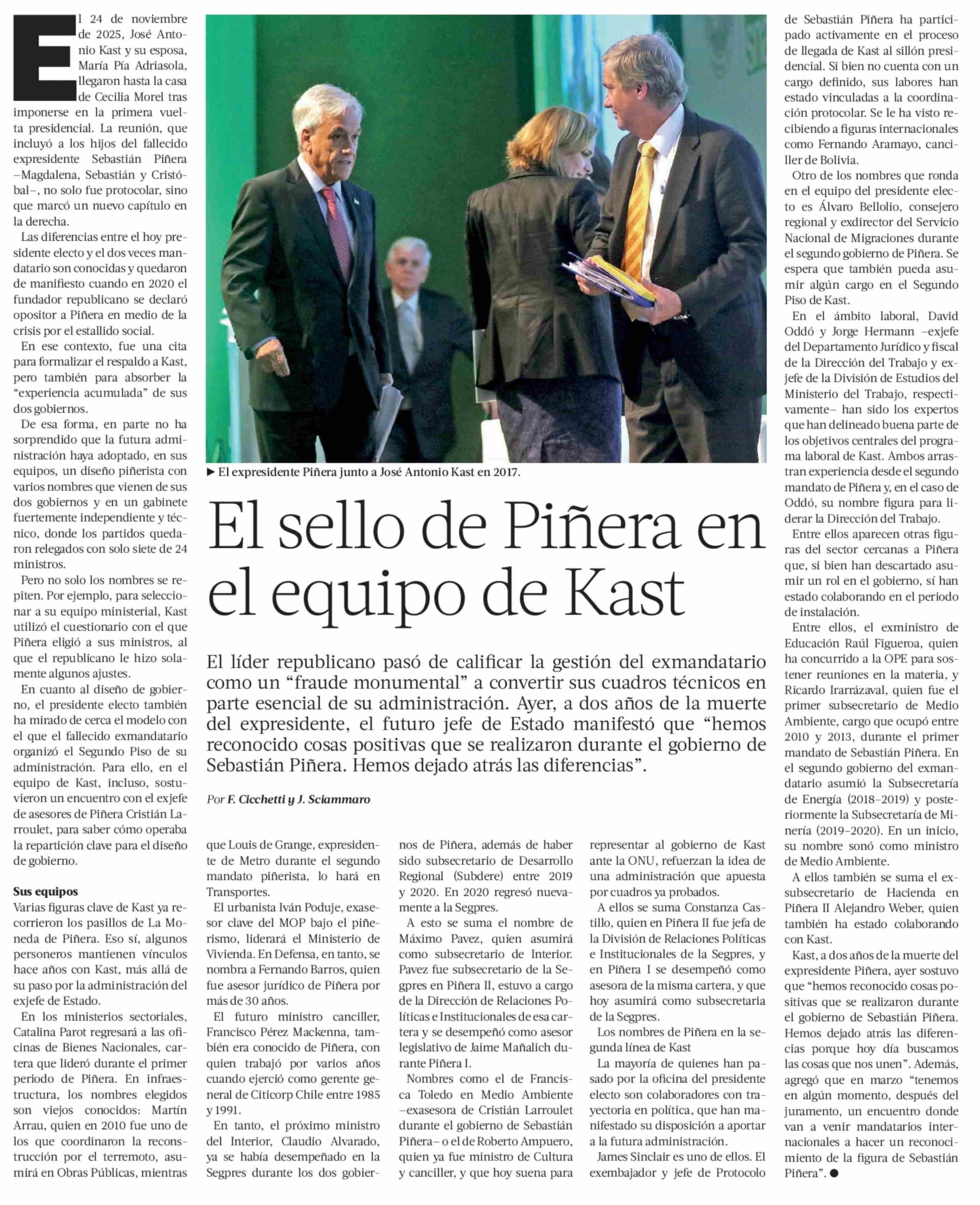 Título: El sello de Piñera en el equipo de Kast