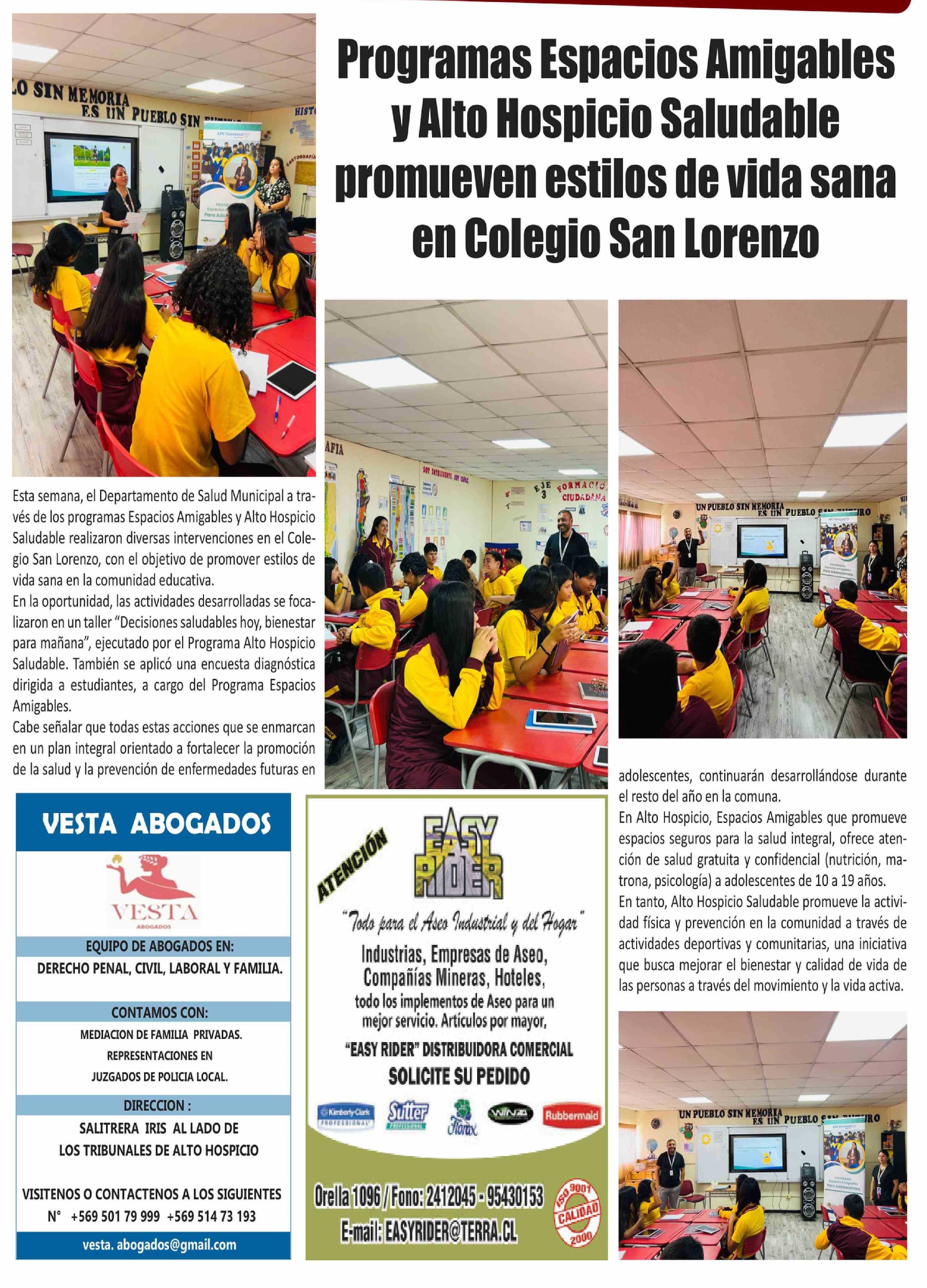 Programas Espacios Amigables y Alto Hospicio Saludable promueven estilos de vida sana en Colegio San Lorenzo 15-04-2026 El Longino |
