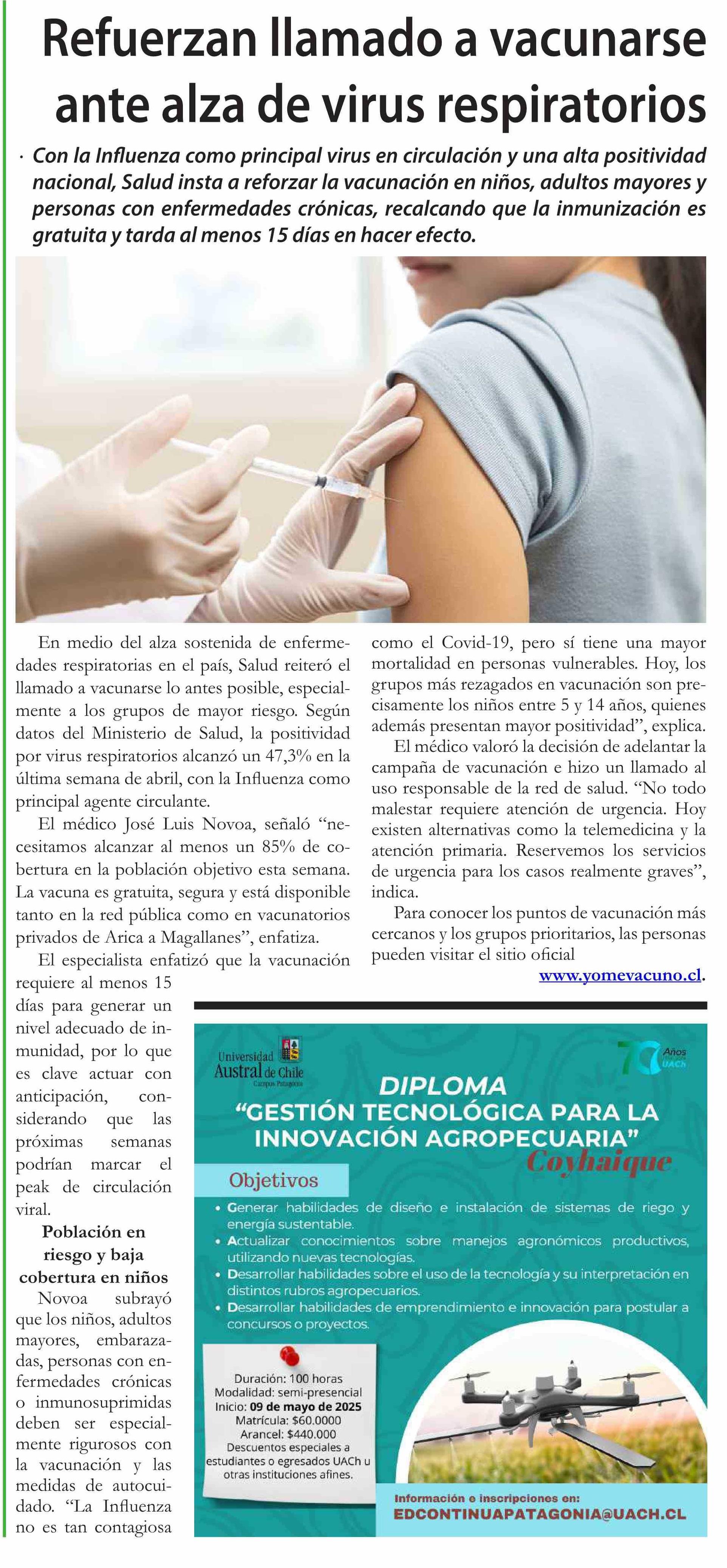 | Título: | Refuerzan llamado a vacunarse ante alza de virus respiratorios |