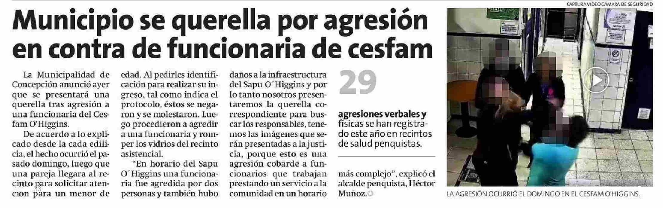 Municipio se querella por agresión en contra de funcionaria de cesfam 28-05-2025 La Estrella de Concepción |
