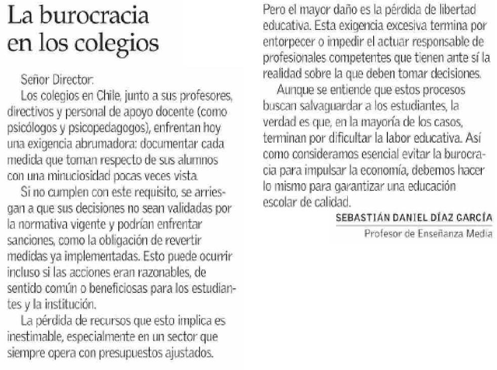 CARTAS: La burocracia en los colegios 12-06-2025 El Mercurio |