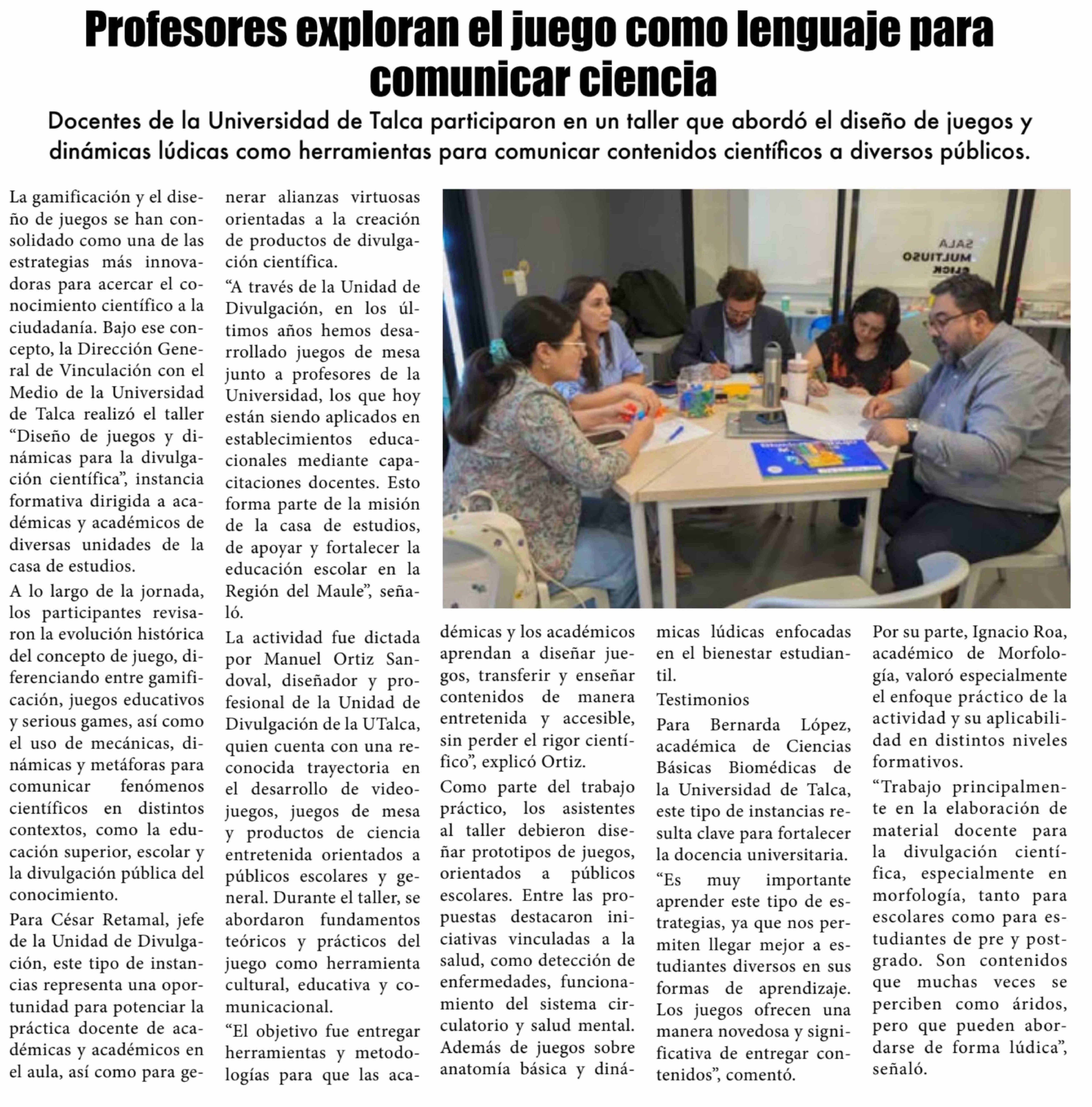 Profesores exploran el juego como lenguaje para comunicar ciencia 11-02-2026 El Lector |