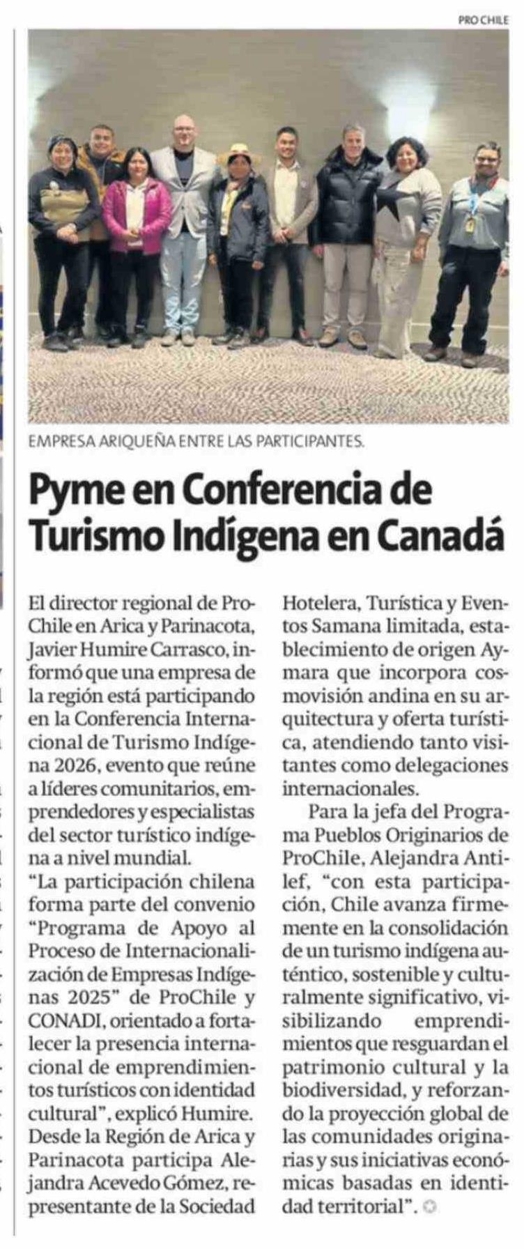 Pyme en Conferencia de Turismo Indígena en Canadá 24-02-2026 La Estrella de Arica |