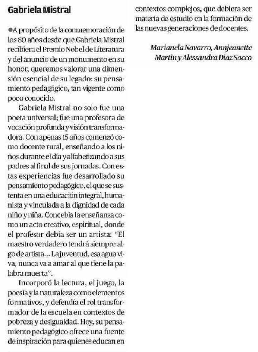 CARTAS: Gabriela Mistral 16-06-2025 El Mercurio de Antofagasta |