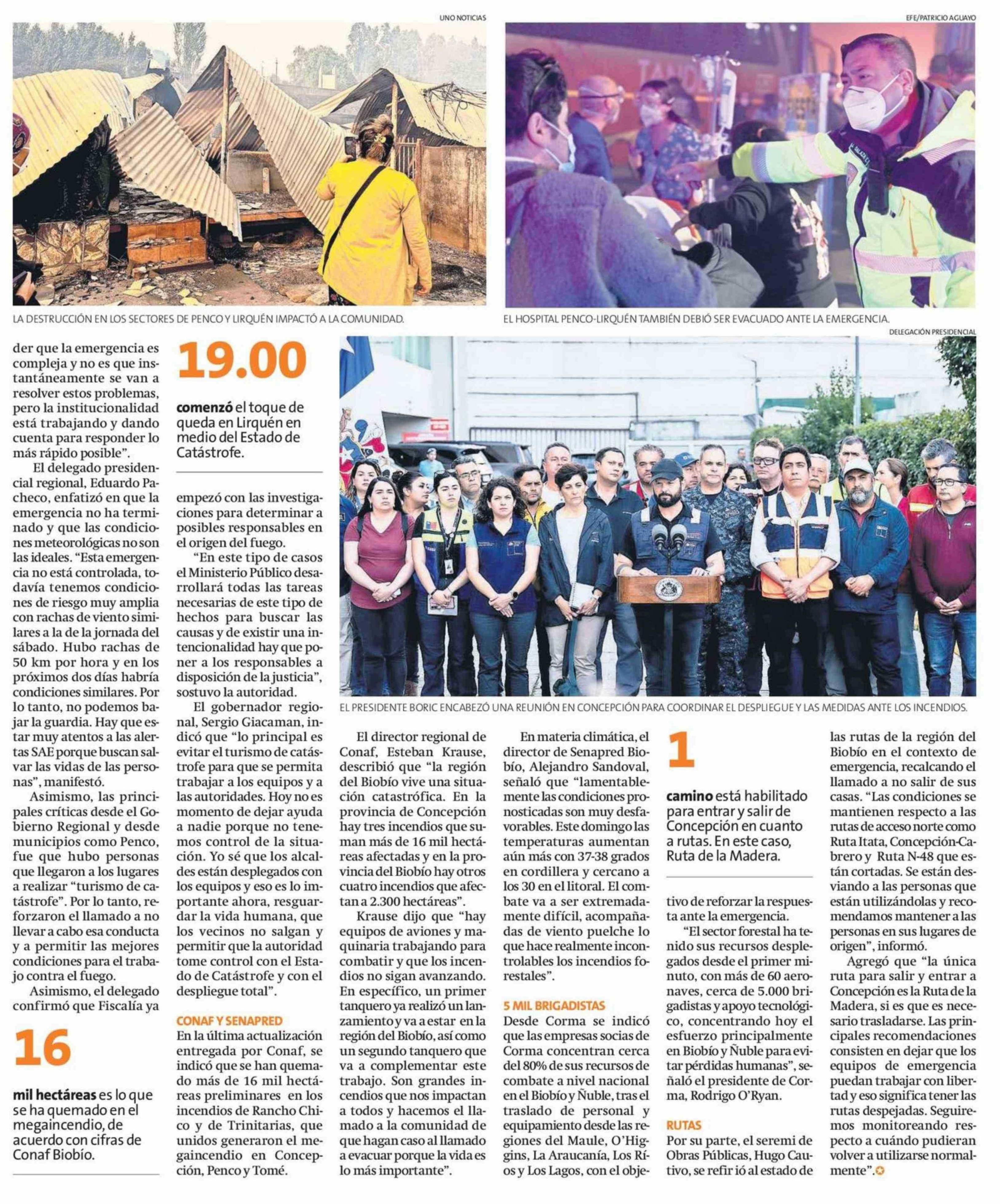 Megaincendio dejaba 18 fallecidos hasta anoche y cientos de casas dañadas 19-01-2026 La Estrella de Concepción |