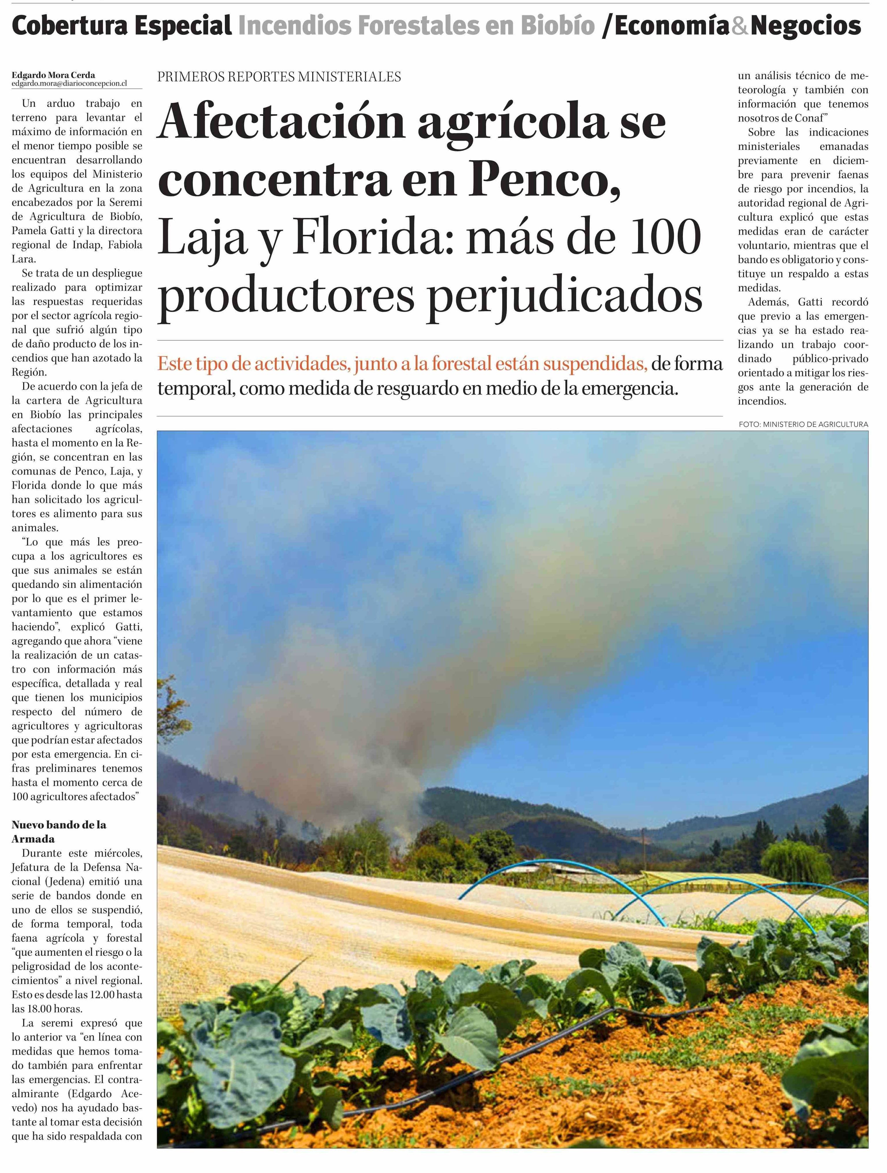 Título: Afectación agrícola se concentra en Penco, Laja y Florida: más de 100 productores perjudicados