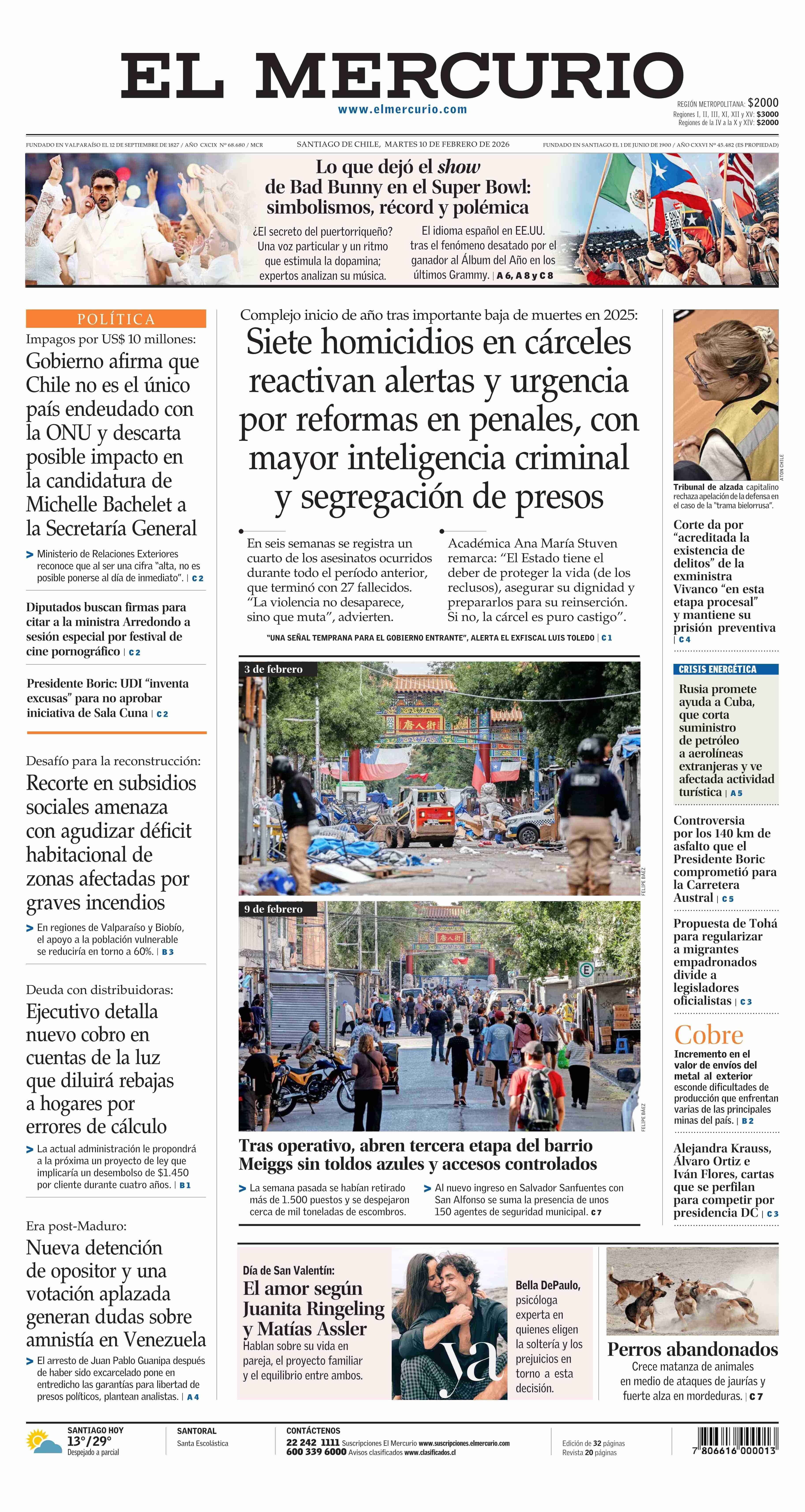 PORTADA EL MERCURIO (A) CHILE 10-02-2026 El Mercurio |
